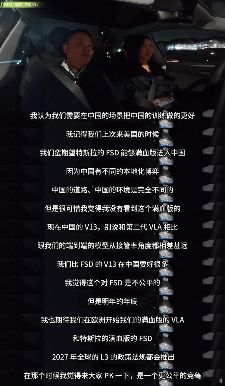 何小鹏又去美国试特斯拉FSD去了,对FSD一顿认可,但FSD我也只看过视频,别说V14满血版V13我都没体验过,驾驶辅助这东西还得实际试光看视频很多东西体现不出来,所以小鹏有没有想法组织我们去美国实际体验一下?在同场对比一下小鹏的第二代VLA,咱也不能只在国内自嗨嘛,咋样小鹏和特斯拉将共同加速全球L4进程