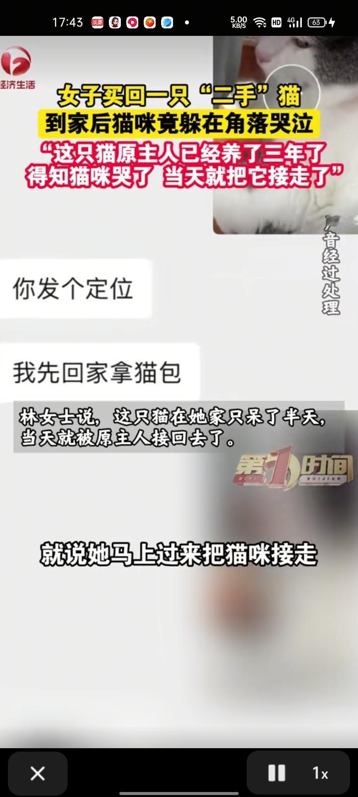 12月30日,重庆。女子买了一只“二手猫”,到家后猫咪躲在角落哭泣。 当事人林女士称,这只猫咪原主人已经养了三年了,从我接它回家的路上,它都没有哭没有叫。等我把它接回家之后,它在角落那里哭。这只猫在自家只待了半天,当天就被原主人接回去了。