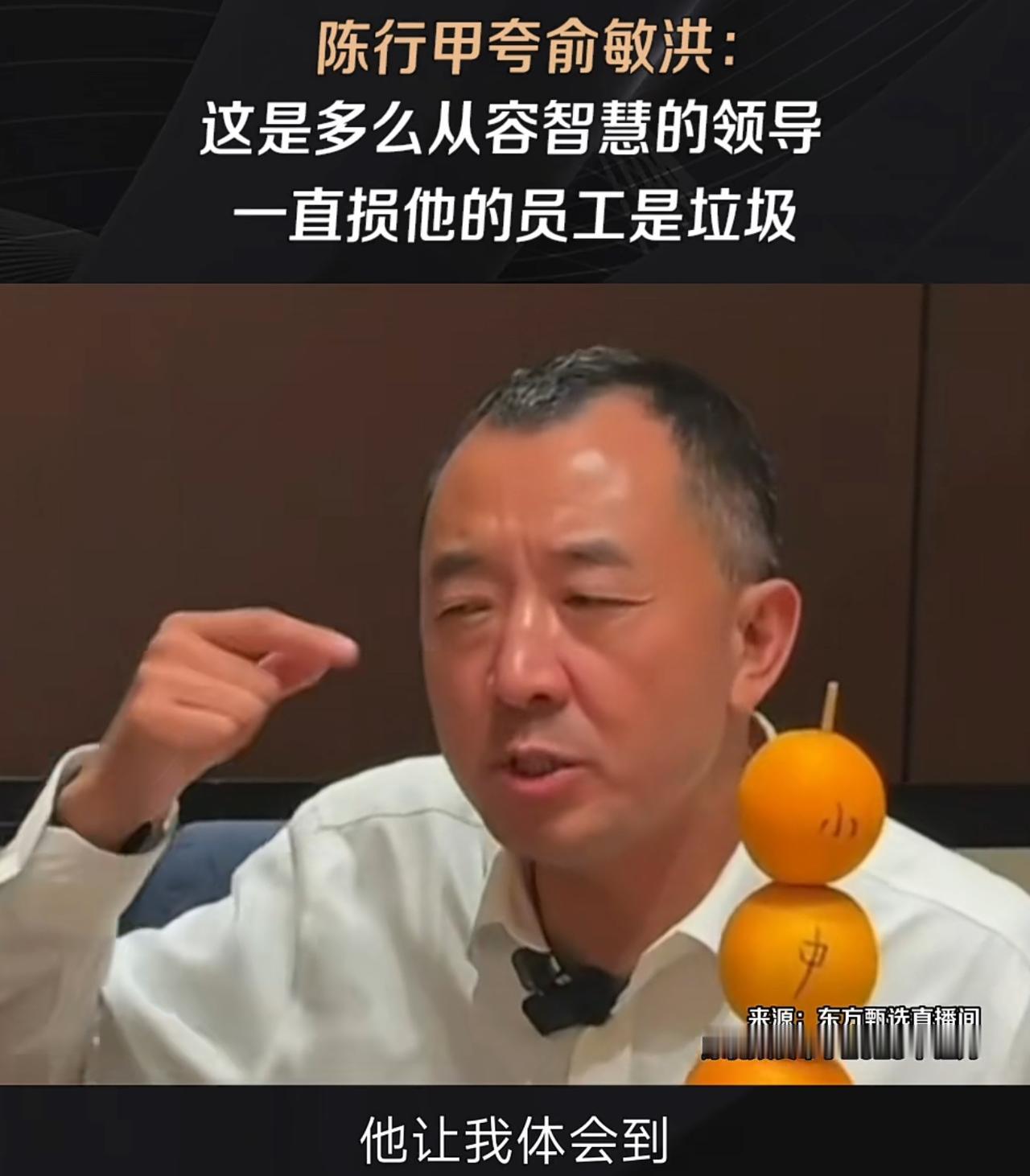 陈行甲直言不讳,他为俞敏洪打抱不平,痛斥损俞敏洪的人里,有一个垃圾! 近日俞敏洪与陈行甲聚会,他说俞敏洪太有雅量,容忍他的下属损他!当然有一个骂俞敏洪一辈子的垃圾,我就不说了! 这个人是谁,明眼人都清楚,用项立刚的话说,每一次没有流量了,这个人就骂俞敏洪铁公鸡,而且一骂就是20年!