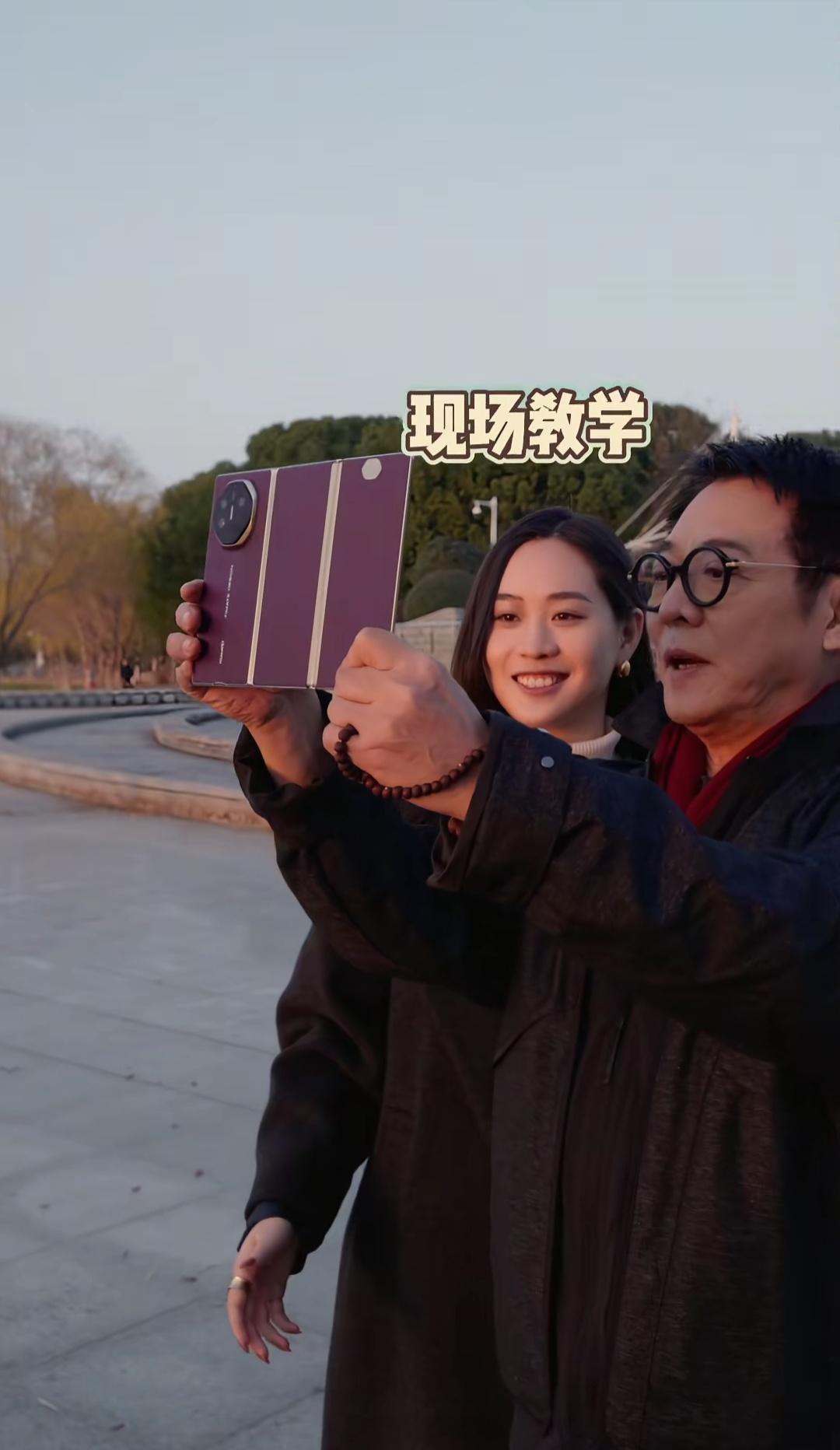 李连杰花样秀自己的新车,女儿也出镜演示尊界的功能,还一起用华为三折叠拍照