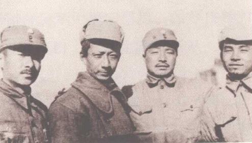 贺龙(右二)与关向应、袁牧之等在冀中。
