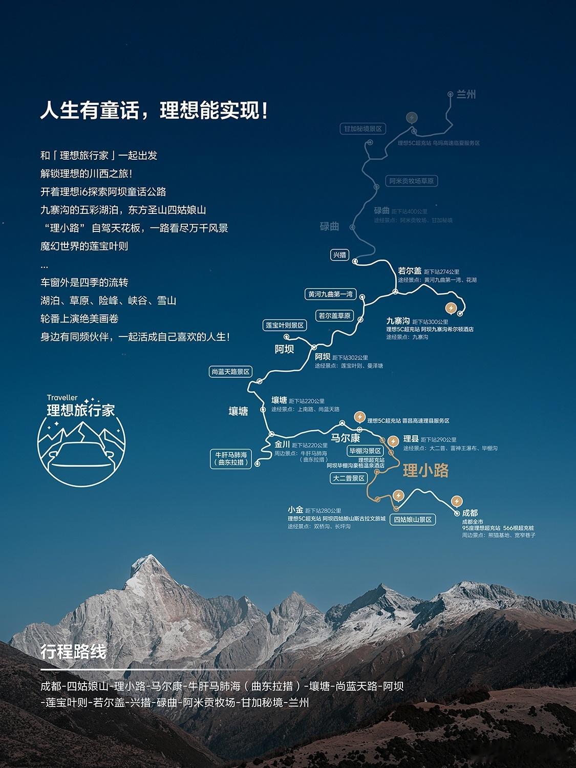 理想汽车不仅路书,在App上还有长途路线规划功能,可以一键发送到车机,跟着路线开,不仅能到目的地,还有沿途的理想超充规划。这一次,来到了鱼子西,不得不说,鱼子西太好看啦,风景绝美。理想的川西之旅人生有童话理想能实现理想旅行家
