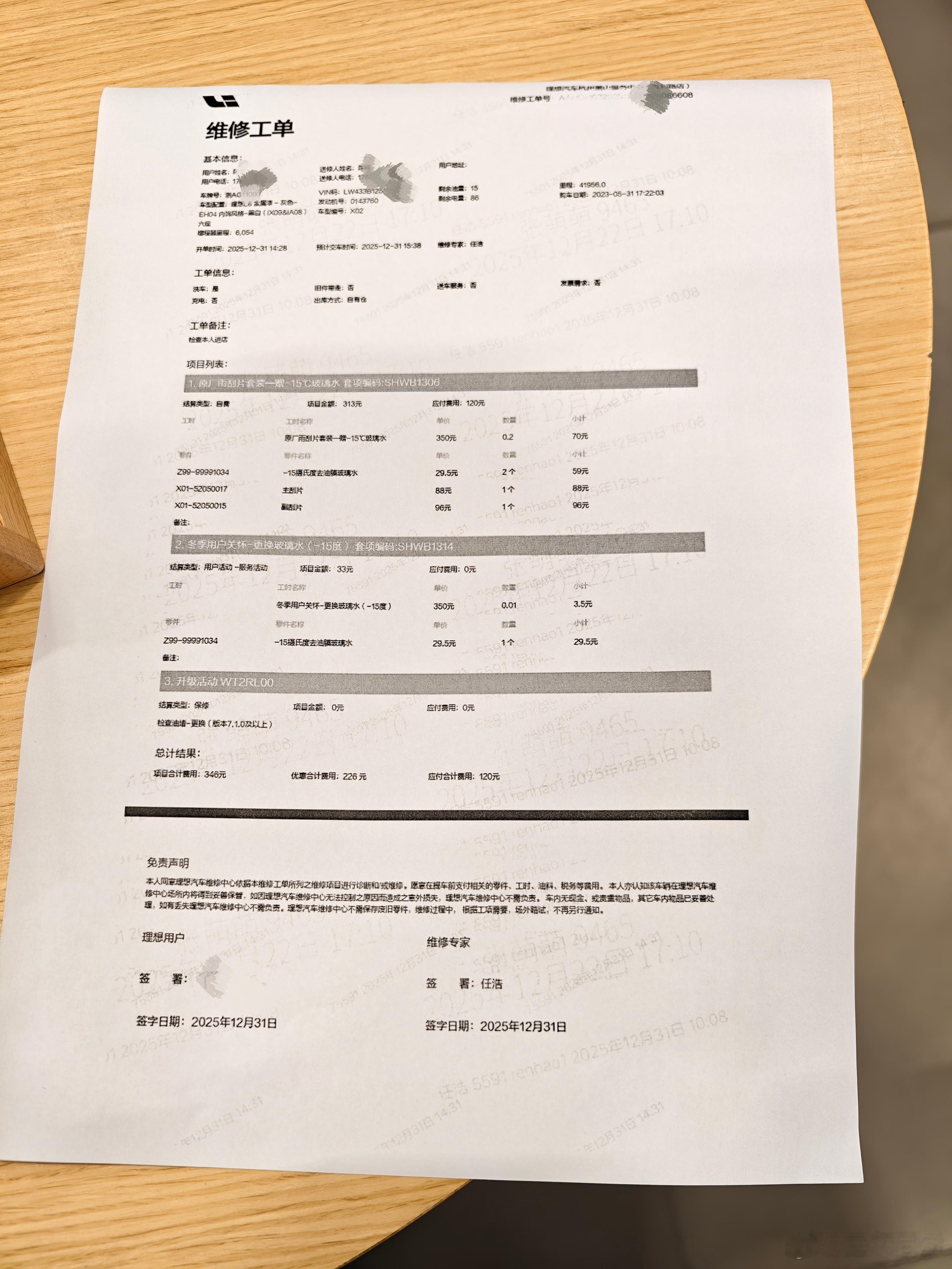 今日,冬天,因为理想换雨刮活动,特意开车去理想售后更换雨刮。不得不说,理想的售后服务真不错,尤其是帮我服务的任浩师傅,在原来的换雨刮的基础上,额外还用冬季用户关怀服务,帮我加满了-15玻璃水,以及检查了油堵,洗了车,加了胎压送了水。这样的服务,让我觉得,即便寒冷冬日,有理想陪伴,让每一次出行,都能那么从从容容,游刃有余冬日理想生活家