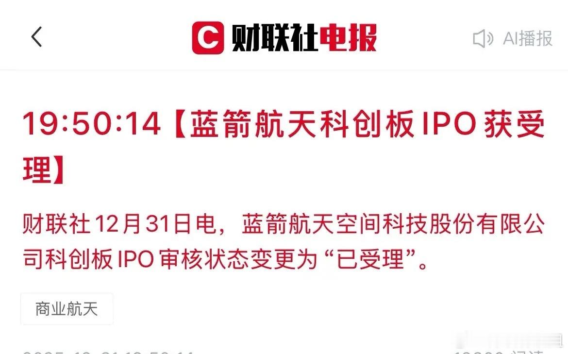 重磅!商业航天第一股IPO迎关键进展!蓝箭航天科创板“已受理”,受益A股公司全梳理!据财联社最新消息,备受瞩目的民营火箭公司——“蓝箭航天空间科技股份有限公司”科创板IPO审核状态已更新为“已受理”。这意味着,“科创板商业航天第一股”的诞生正式进入倒计时。这一事件不仅标志着资本市场监管层对商业航天这一战略性新兴产业的鼎力支持,作为行业龙头的蓝箭航天,其上市进程将成为整个板块价值重估的“催化剂”。核心供应商以及A股相关联的企业也将受益!1.参股/合作关联类企业·金风科技:直接持股4.9953%。·鲁信创投:间接持股0.89% 。·张江高科:通过张江燧锋基金投资1.5亿元。·诺瓦星云:权益工具投资706万。·南天信息/科兴制药/荣盛发展/养元饮品:通过不同产业基金间接投资。·世纪华通:投资比例较小。·通宇通讯/金隅集团:与蓝箭航天同为鸿擎科技股东,其中金隅集团间接持有鸿擎科技0.35%股权,通宇通讯与蓝箭航天因参股鸿擎科技保持业务沟通。·思科瑞:与蓝箭航天等30家企业联合成立商业航天产业创新中心,属于产业层面的合作布局。2.核心供应商·盟升电子:其卫星导航产品已成功配套于蓝箭航天“朱雀”系列火箭的箭机系统,双方合作多年。·豪能股份:公司航天零部件业务(包括特种阀门、箭体结构件等)已与蓝箭航天等头部企业开展合作,部分项目已完成定点,进入实质供货阶段。·广联航空:公司为蓝箭航天提供工艺研发与零件试制服务,并表态将建立长期稳定合作关系,深度参与其产品研制。·斯瑞新材:提供液体火箭发动机推力室内壁产品。·铂力特:利用金属3D打印技术研制并批产多型零部件。·超捷股份:提供一级尾段产品。·航宇科技:产业链深度合作。·高华科技:供应高可靠性传感器。·航天晨光:提供金属软管配套服务。·国机精工:供应轴承产品。·国光电气:批量生产供应霍尔电推进器核心部件。·应流股份:持续供货航天相关产品。·中航重机:提供高性能铸件 “天雀12”发动机。·派克新材:提供箭体结构件和发动机锻件。·上大股份:供应结构件,已获资质认证并稳定批产。·航天电器:提供连接器等互连产品配套服务。·大族激光:联合研发大直径火箭发动机夹层喷管激光接技术。·协鑫能科:战略合作。3.项目承建类企业·深桑达A:承建蓝箭航天可复火箭产业项目 2024年新承建重点项目。·精功科技:完成防护塔、工装、连接器设计等项目 2020年签订并完成 。航天概念股蓝箭航天IPOA股市场股市第一线