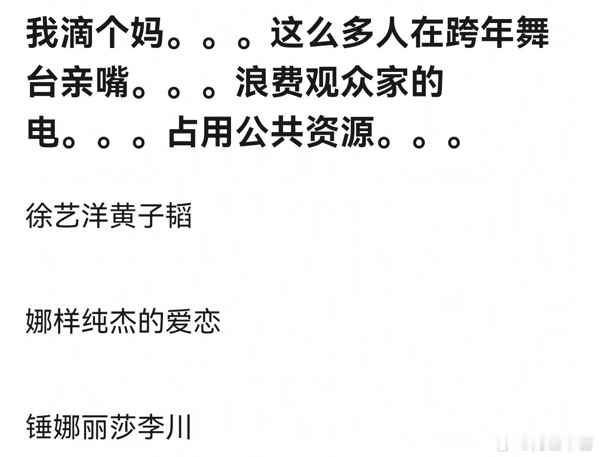 请跨年晚会放过单身人士。。。。。怎么那么多亲嘴的???放过观众好吗?🤮