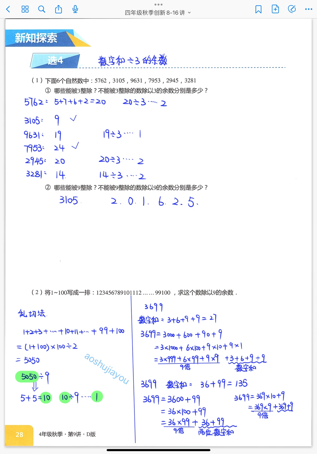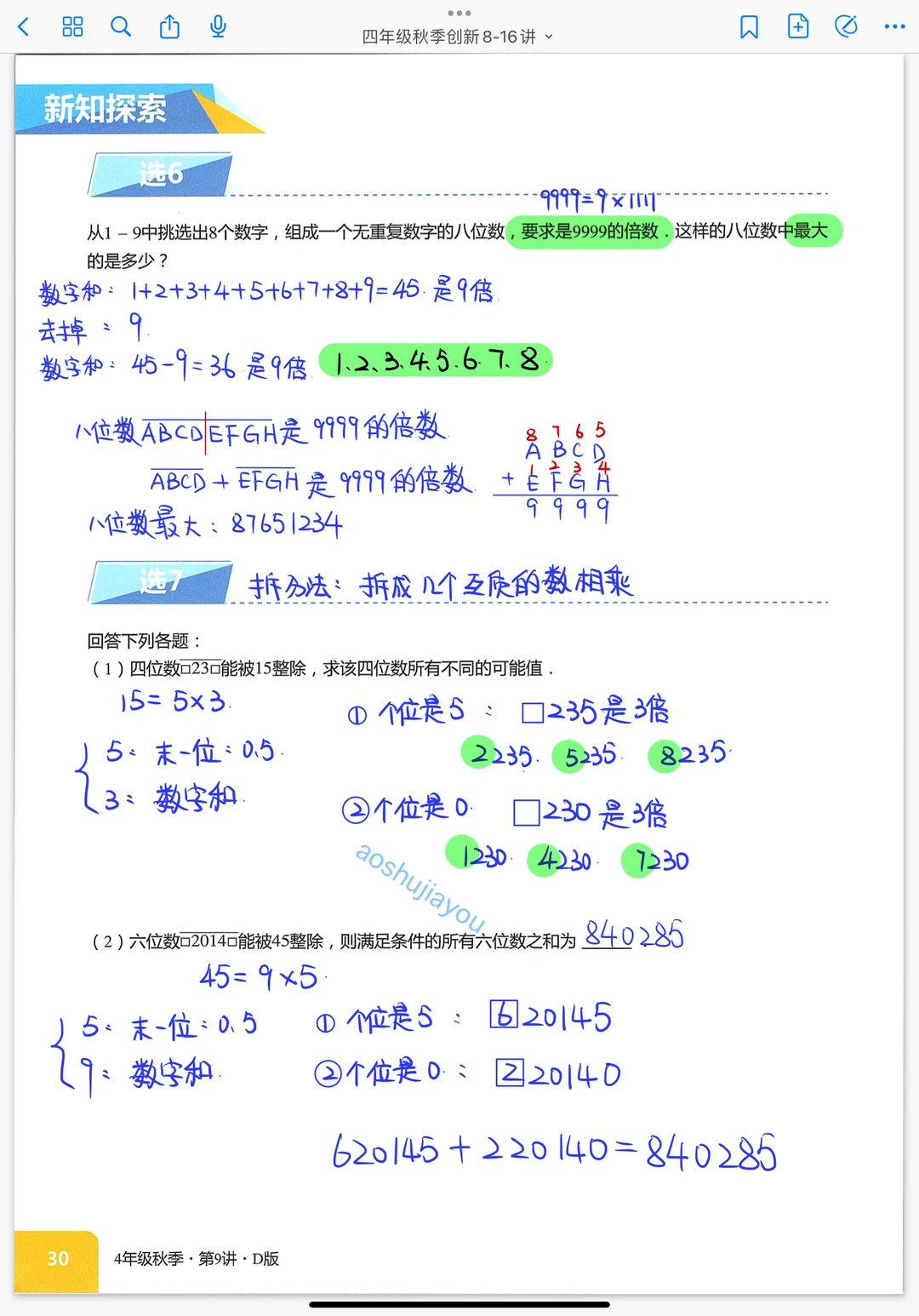 《计数综合》五年级秋季创新班奥数课堂笔记