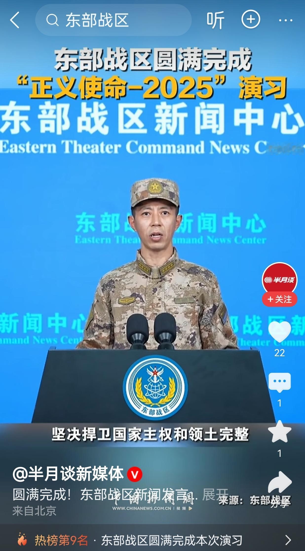 中国人民解放军圆满完成正义使命——2025军事演习任务。