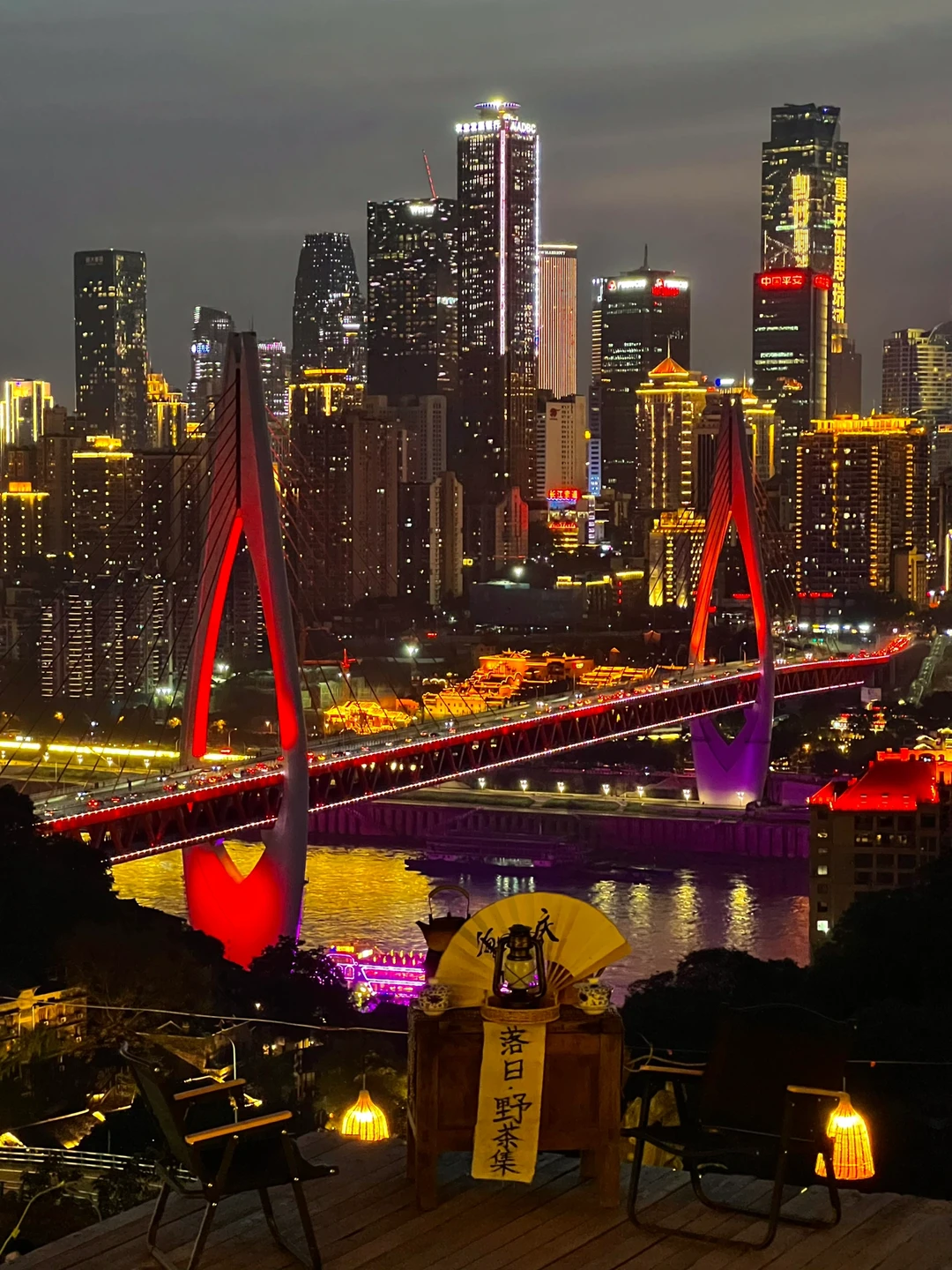 4⃣️ 晚上20:00大桥会开灯,时不时会有游轮驶过,配上重庆的城市夜景真的绝美