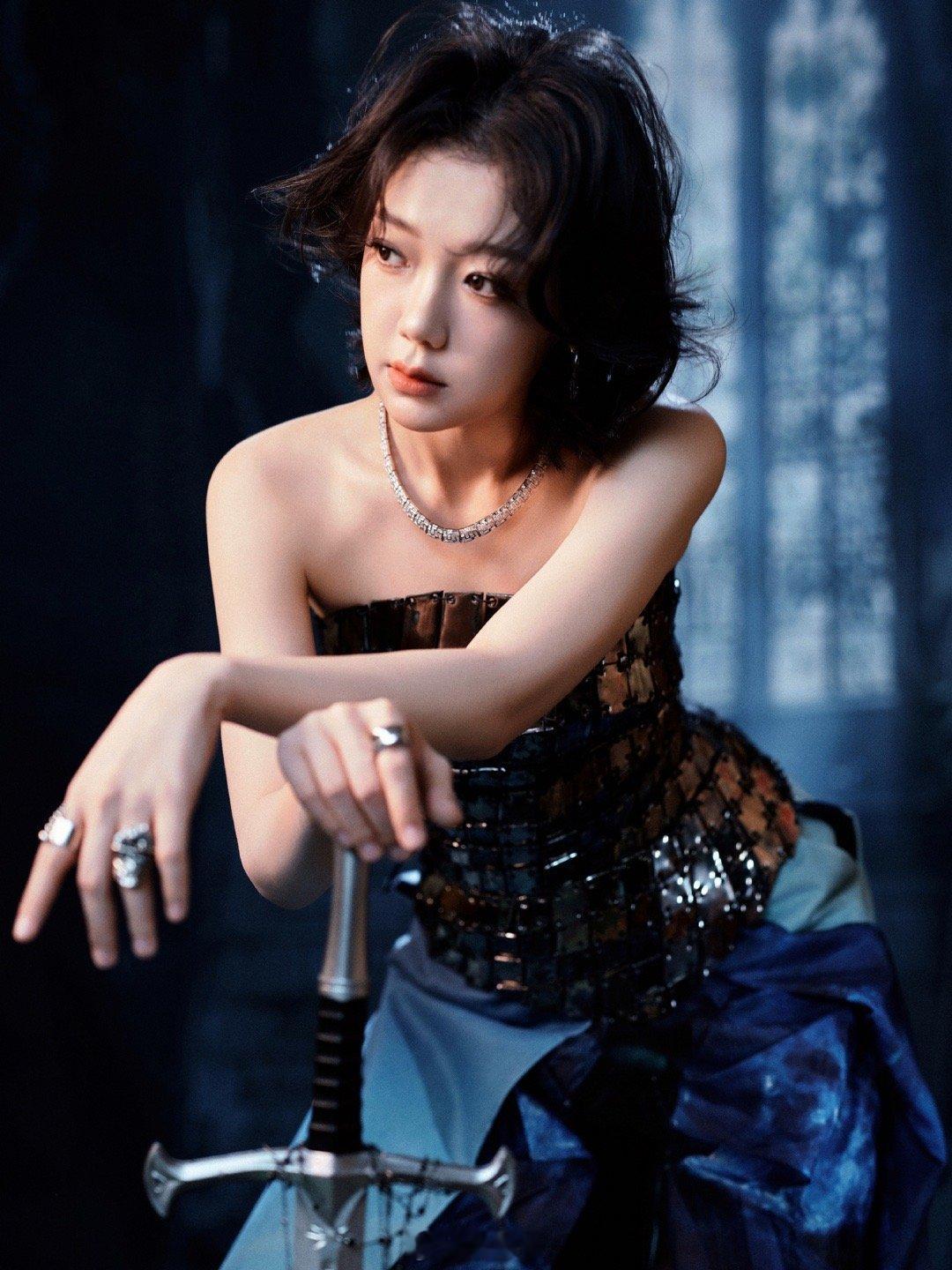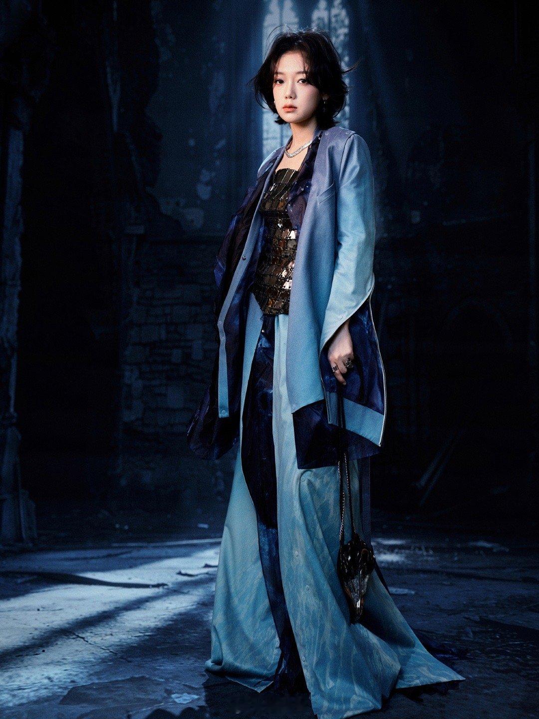 希林娜依高 女战士希林娜依高跨年高定战袍 若仙女落入凡尘,必是希林娜依高这般模样。跨年造型别具一格,星海般的裙装包裹着飒爽英姿,银蓝光芒交织出灵动气场。这不仅是高定战袍,更是她征战舞台的荣耀铠甲。