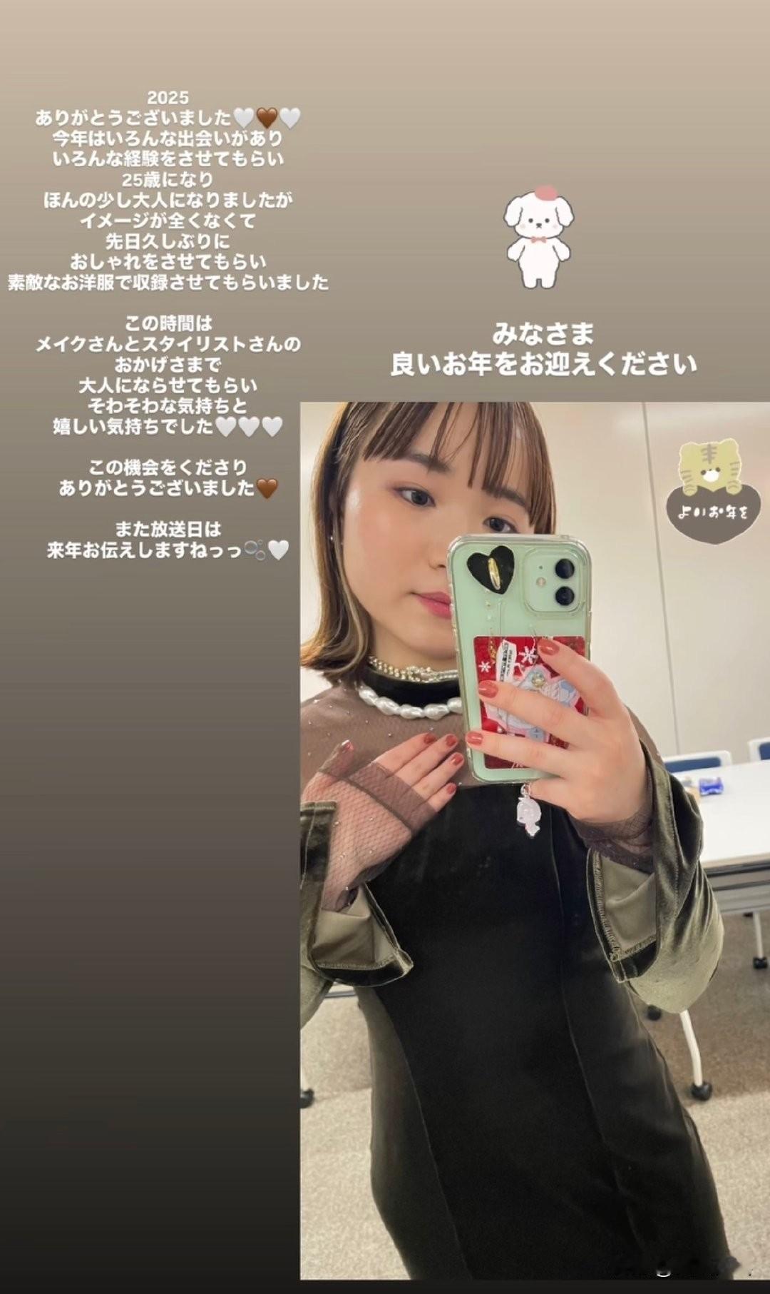 伊藤美诚:2025年谢谢大家🤍🤎🤍今年有各种各样的相遇,让我拥有了各种各样的经历。25岁,虽然稍微成熟了一点,但完全没有印象。前几天久违地让我打扮了一下,用漂亮的衣服收录了,这次多亏了化妆师和造型师,让我有了大人的样子,心情既紧张又高兴🤍🤍🤍谢谢给我这个机会🤎播出日期明年再告诉你哦🫧🤍 祝大家新年快乐(机翻) 2025.12.31