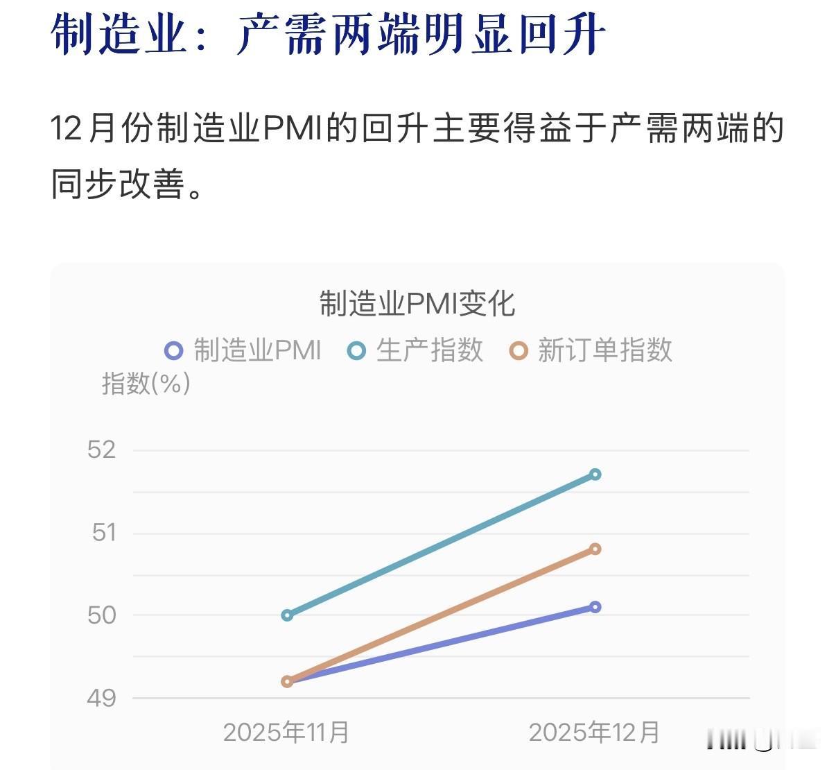 2025年12月PMI数据:经济景气度显著回升。 建筑业显著回暖。 根据国家统