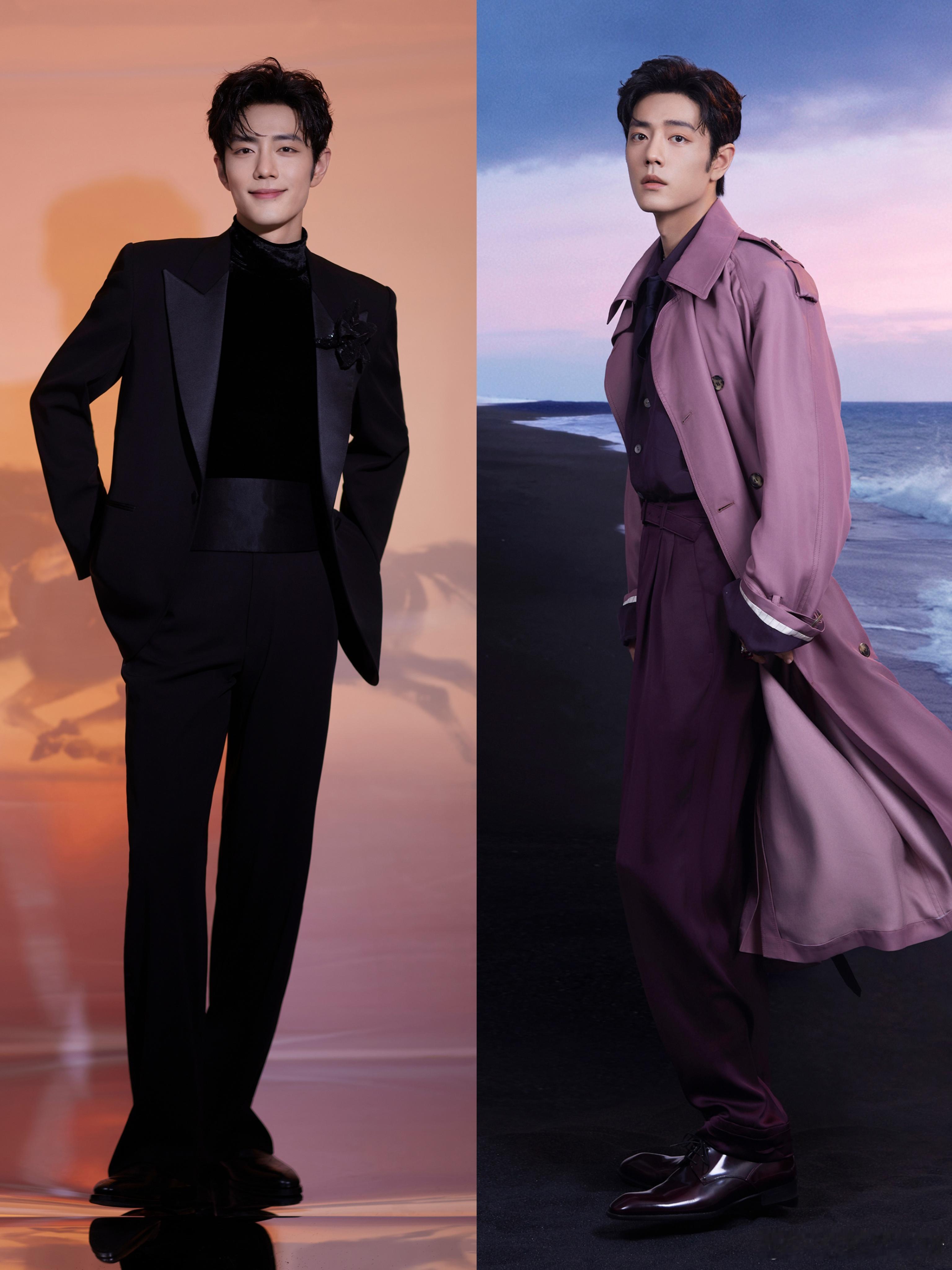 肖战今晚4个舞台四个舞台就两身衣服,跨年的服装整的,这身黑色的可以去颁奖晚会,这个风衣我是没看懂啊