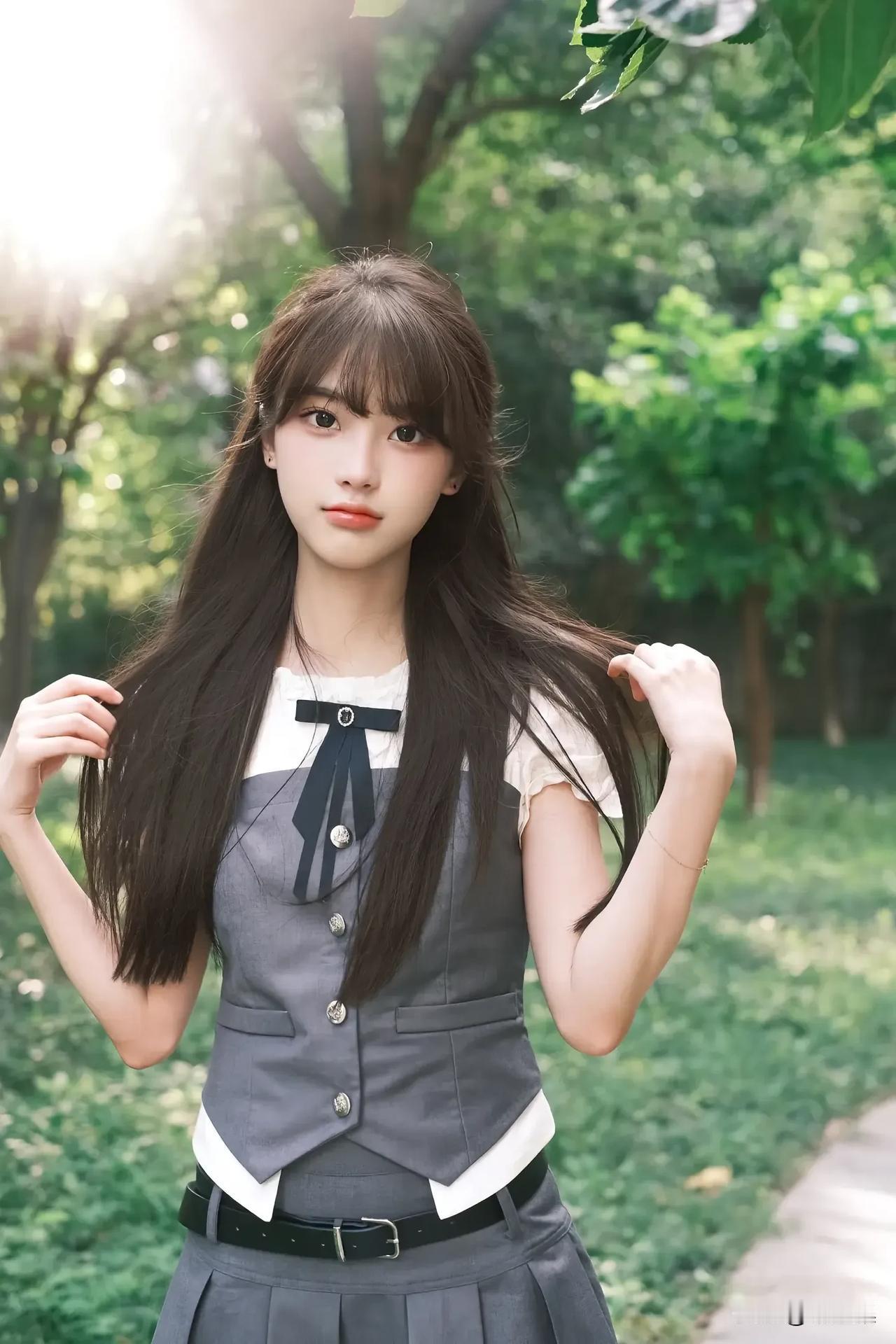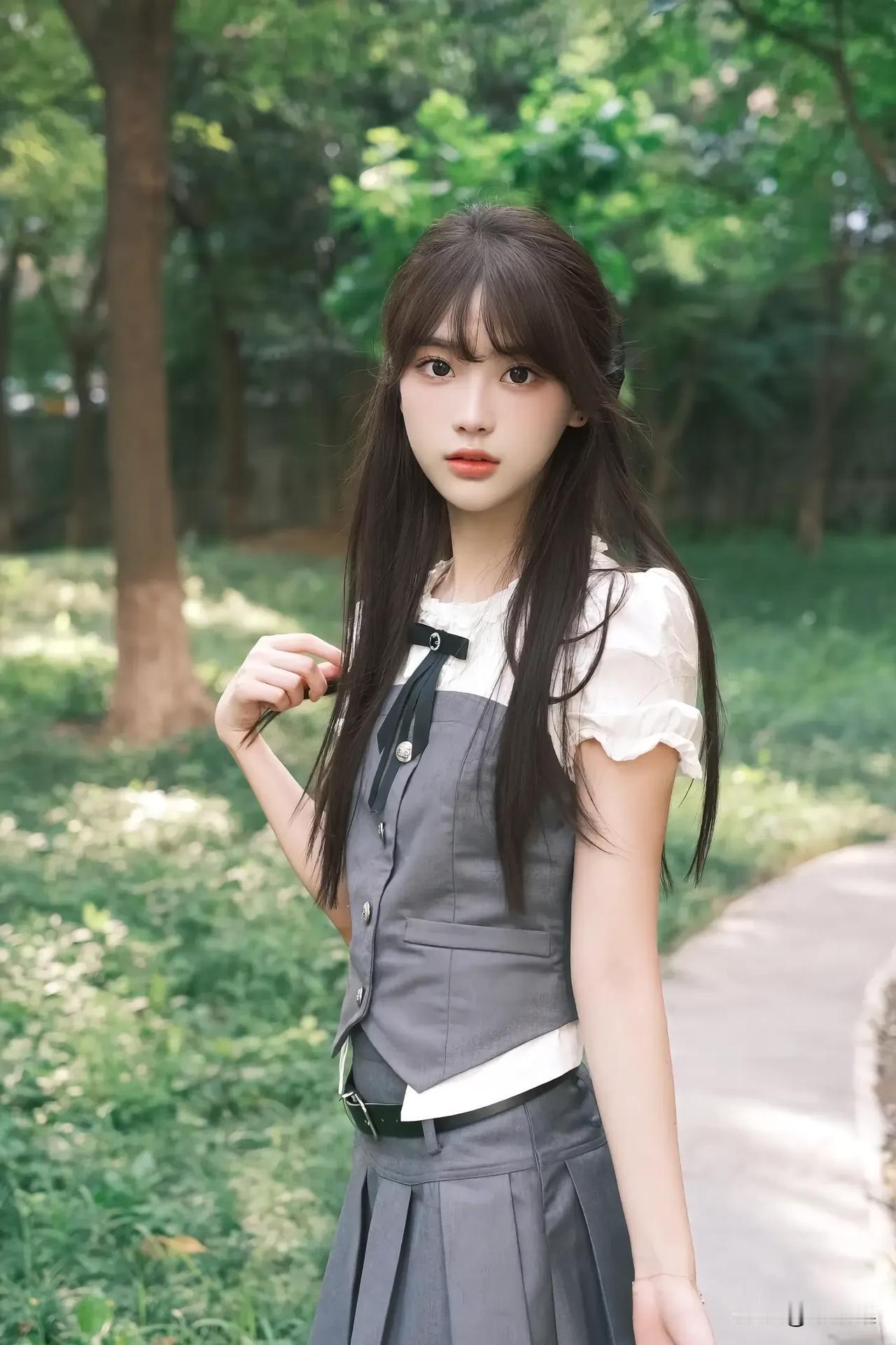 校园风少女,绿意盎然中绽放青春活力!🌿💖