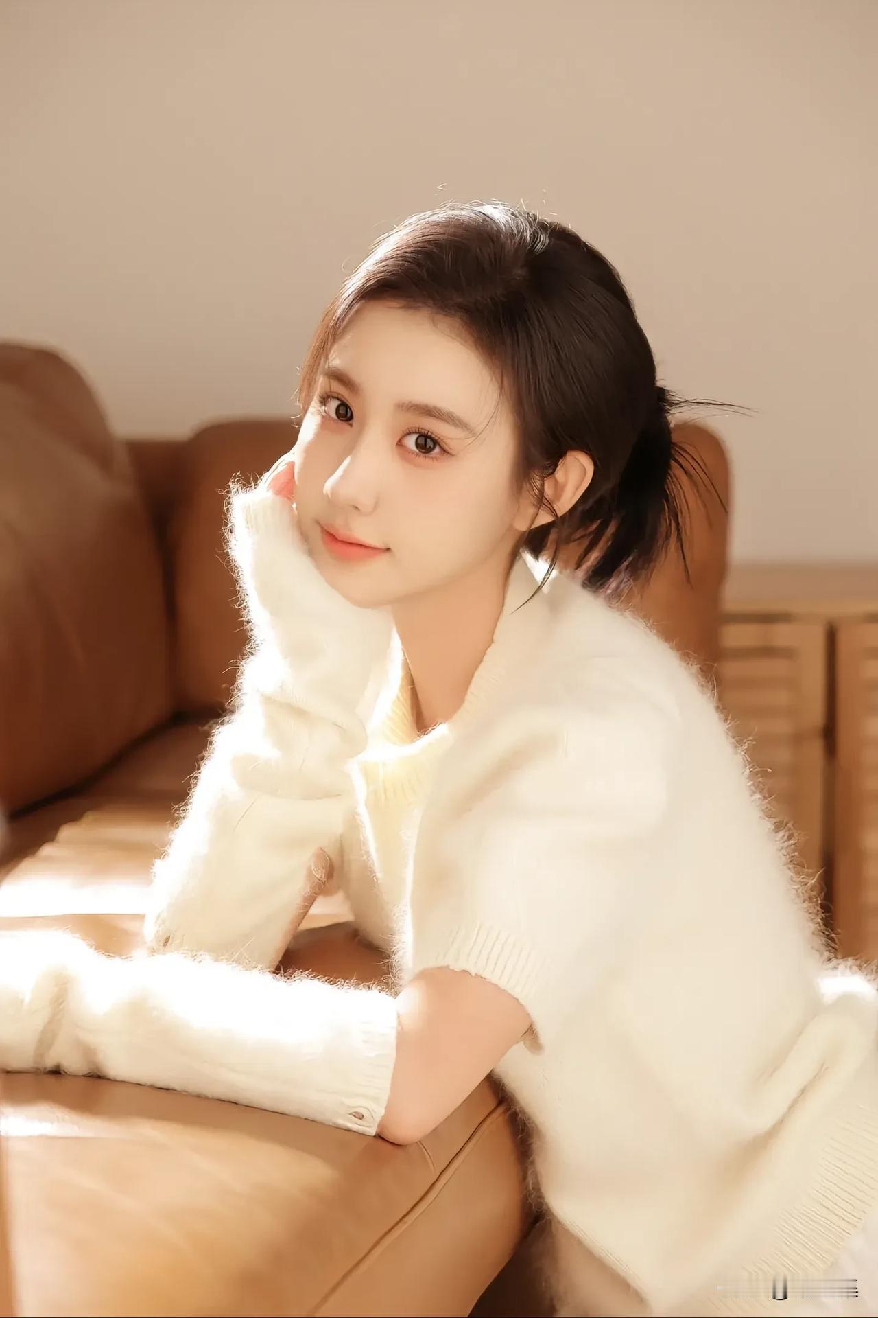 冬日暖阳下的温柔少女,毛绒毛衣与粉裙的完美搭配,甜美又舒适。🌞👗💕
