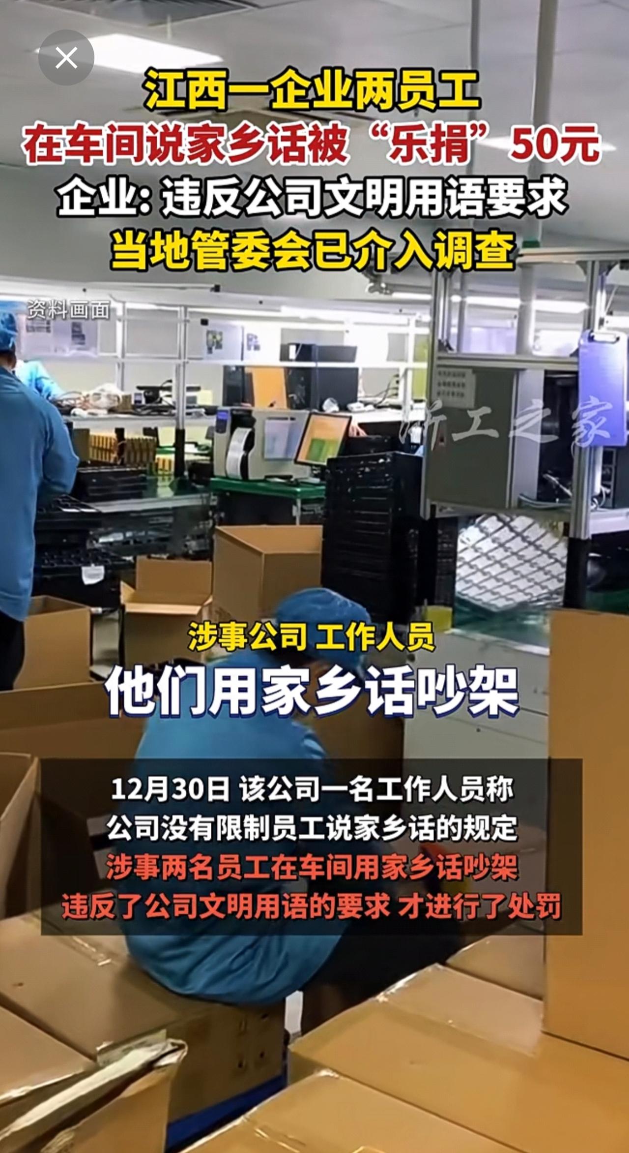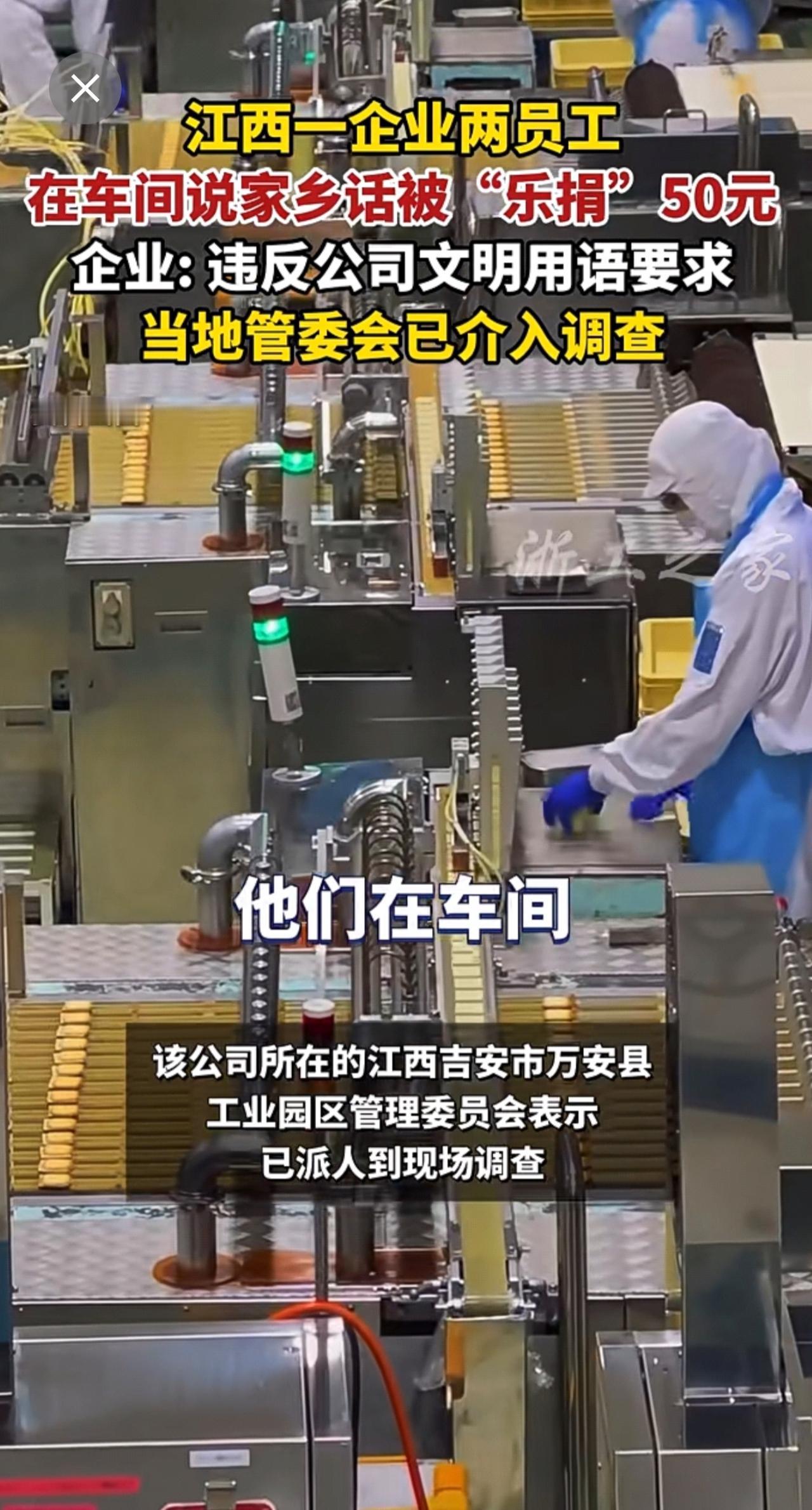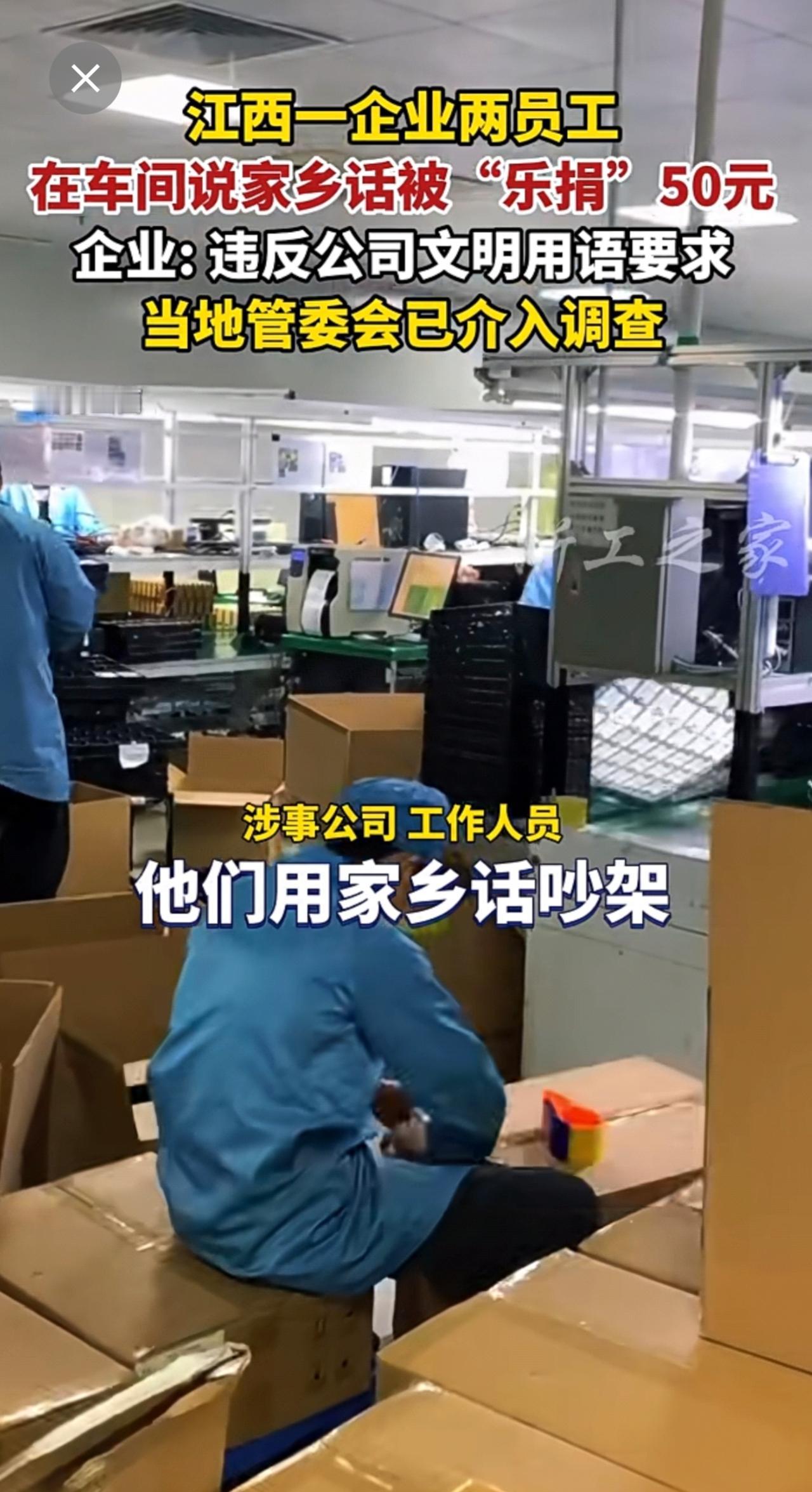 员工在车间说家乡话被“乐捐”50元,当地已介入调查(来源:纵览新闻)公司