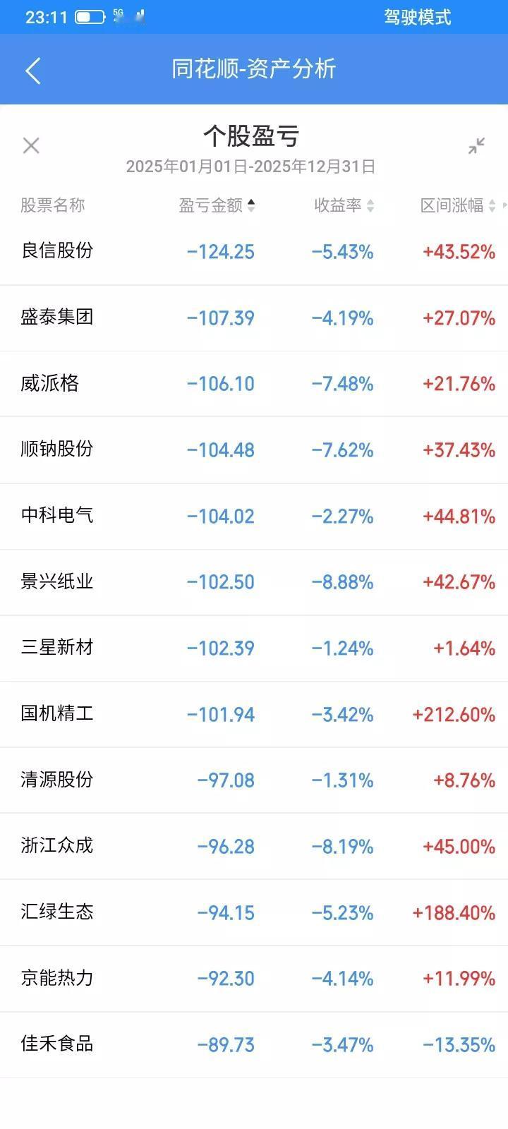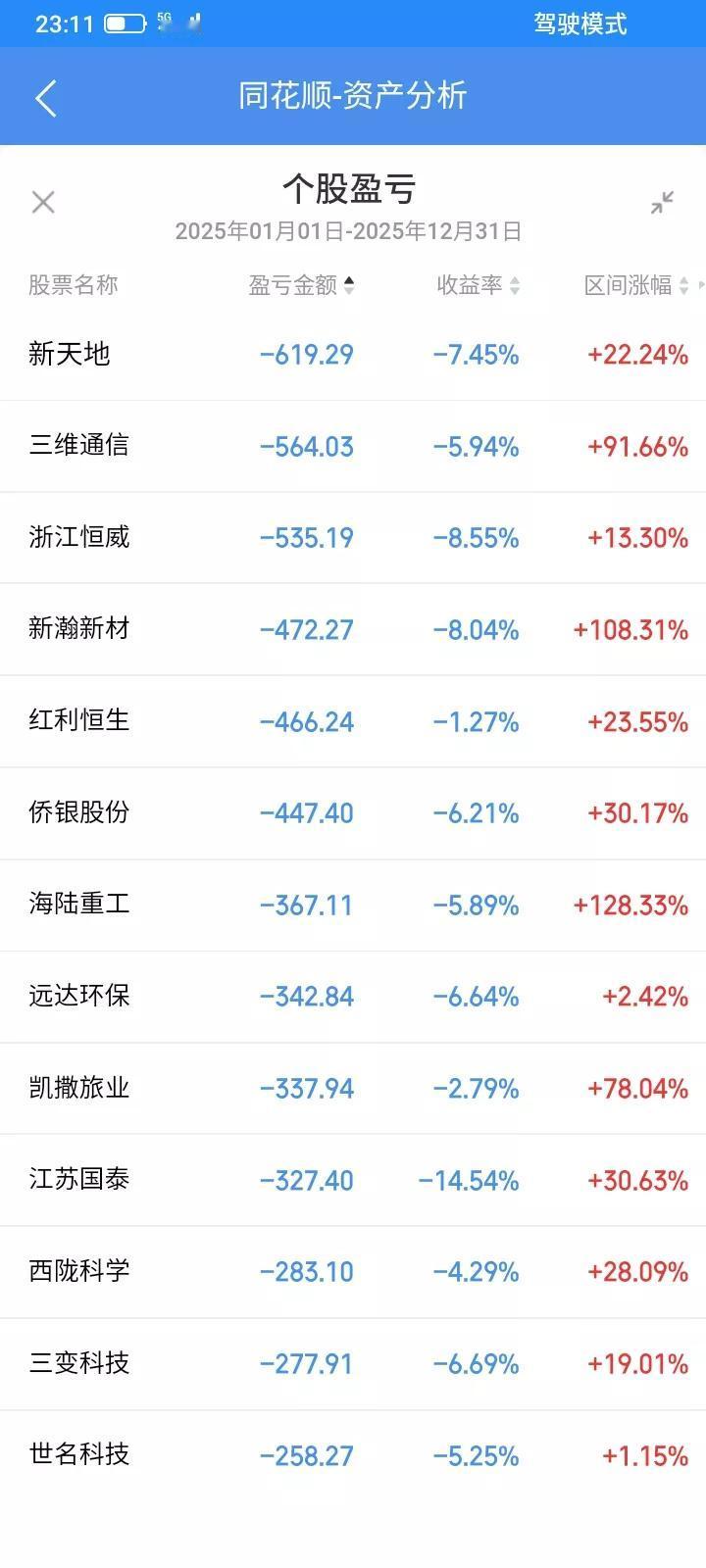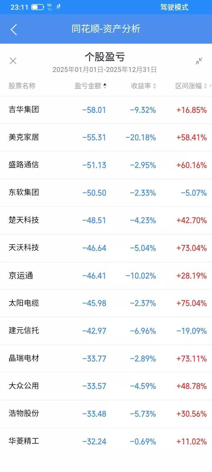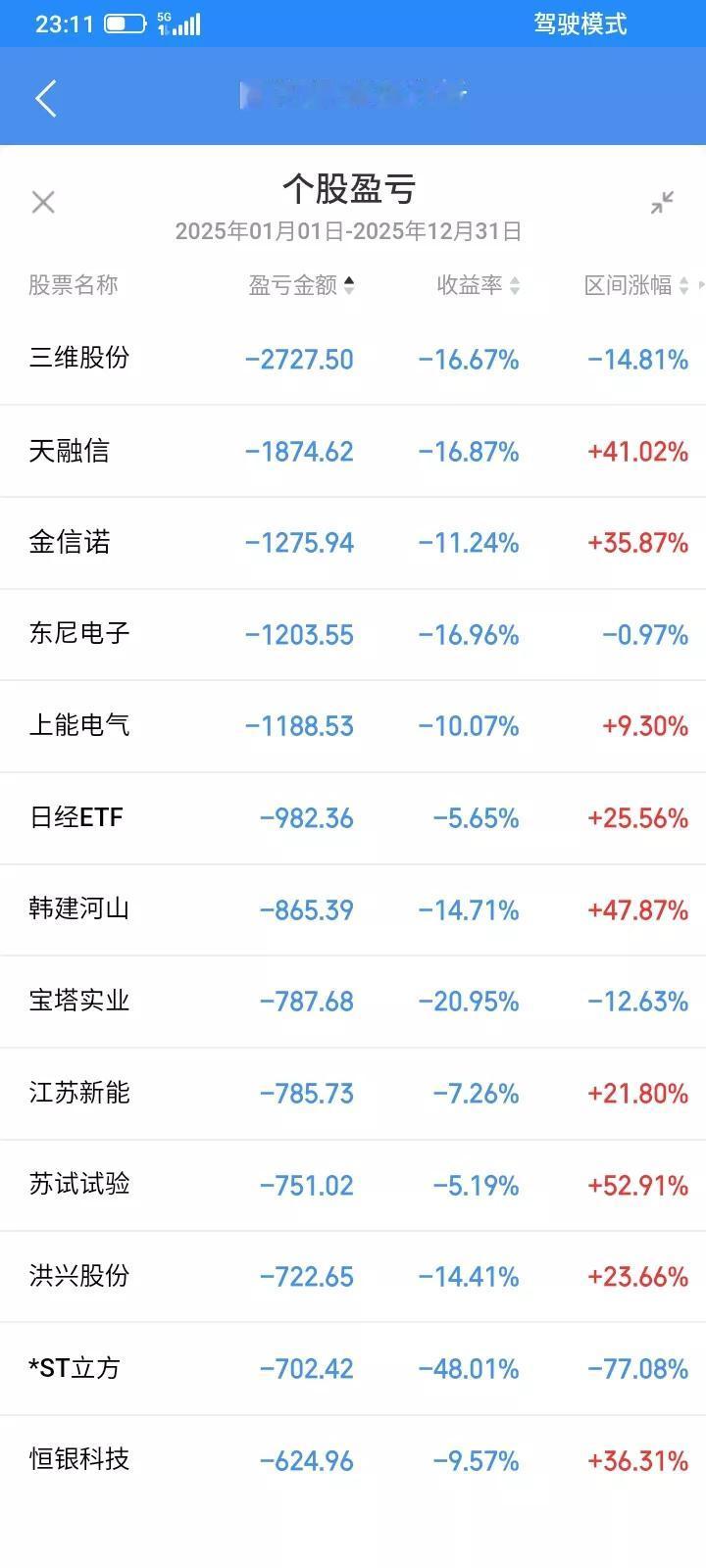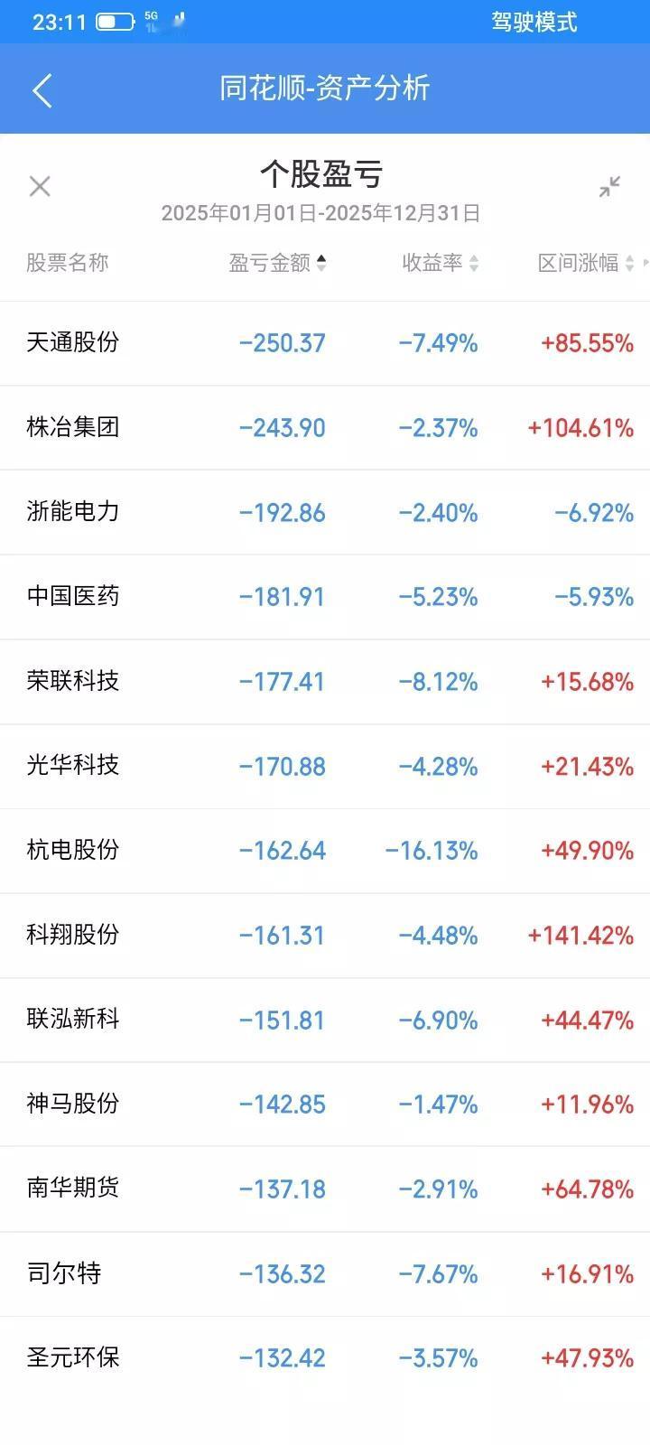 2025年,换股太频繁了,一共操作了160多只股票,清仓了200多次,交易佣金300多,印花税600多,一共亏损了5100多块,太贪心了,赚钱的卖得太快,下跌的时候又太胆小了,亏钱的拿得太久,经常冲动性交易,几次大亏,2026年换个思路了,放弃幻想,按照计划执行,降低交易频率,首先保住仅剩的一点本金,再求发展。