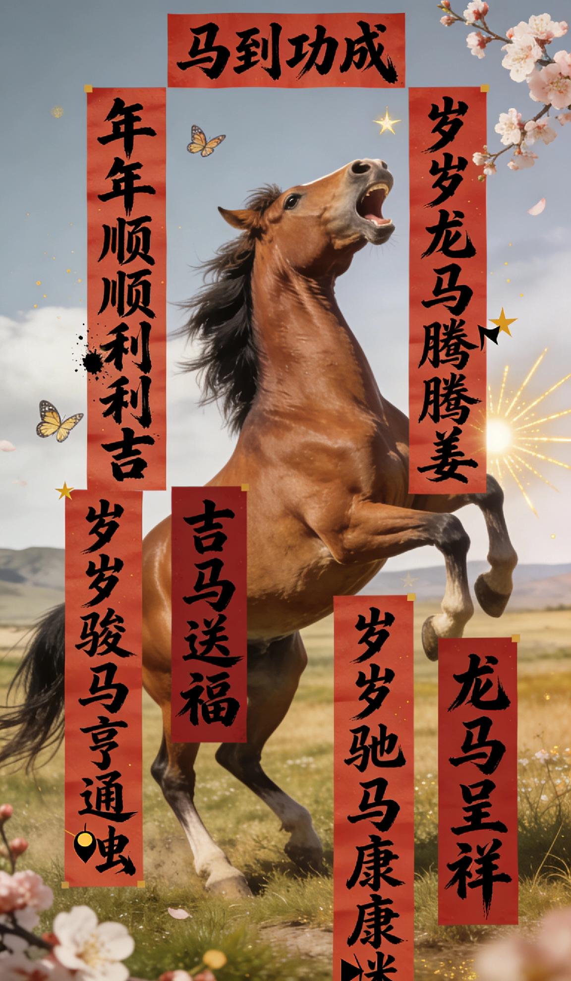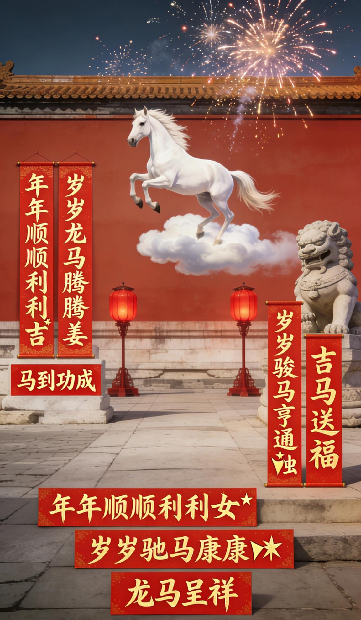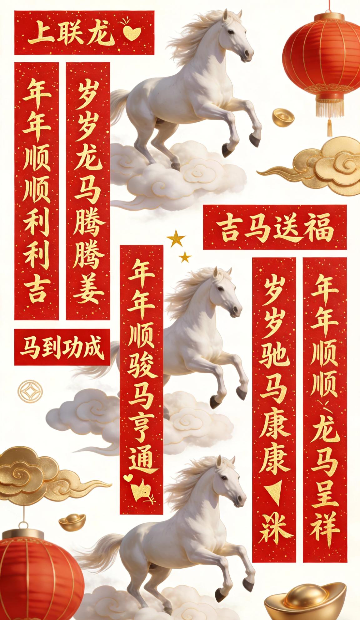 上联:年年顺顺利利🐉 下联:岁岁龙马腾腾🐎 横批:马到功成