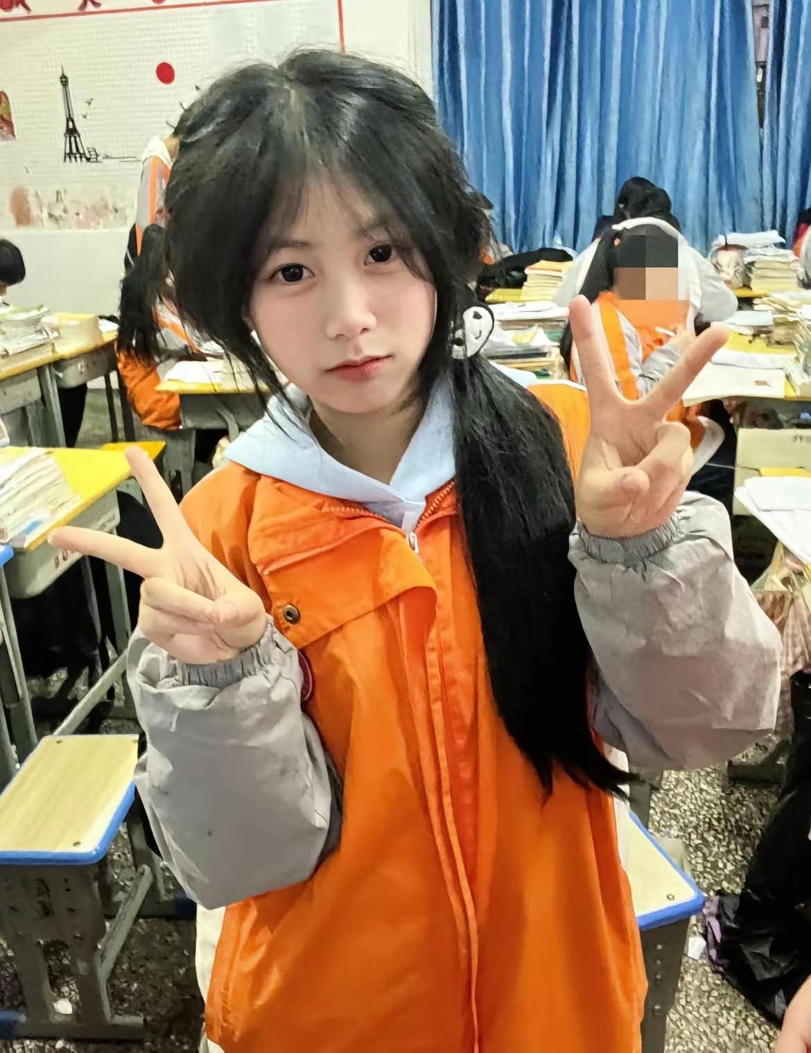 黑长直的发梢垂着温柔的弧度,齐刘海藏住几分灵动,指尖轻抵下颌的瞬间,把清冷又甜美