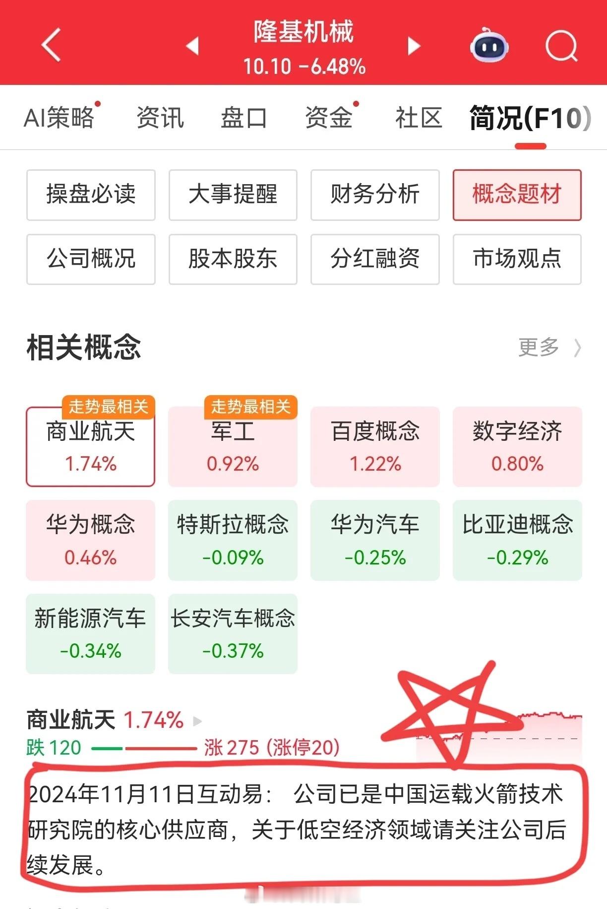 突破后的回踩,一旦回踩确认后再次回升,也许就是一轮主升行情。隆基机械,先看其所在行业,走势较相关依次为商业航天、军工、百度、数字经济、华为等等。再看其走势,三连板后开始回调。前面这个三连板,来得太突然,错过也正常。一字板的无量,惜售明显,第三板的放量,筹码有效释放。跌停,又大涨,量能是一缩又一放,这种震仓,获利盘走了大部分。继续下跌,恐慌盘也走了。周线看,上升轨道被突破,回踩如果不破上轨,一旦回升(此时省略四字)。月线看,长期的平台也被突破,突破是否有效,有待观察。