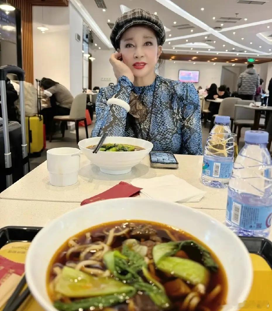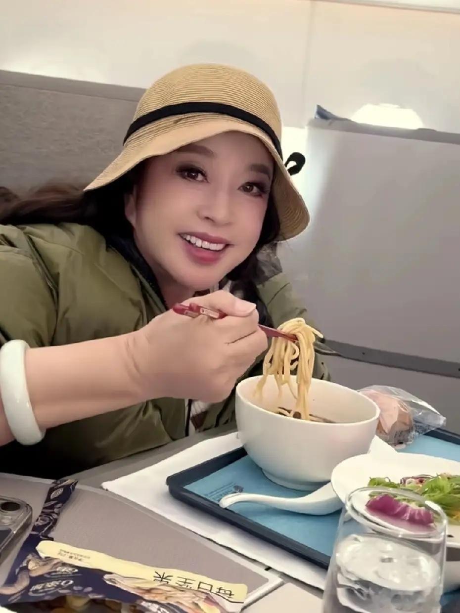 刘晓庆晒出在飞机上吃面,看来跨年是要在飞机上过的!看她吃饭真香,大口吃饭,大口吃肉,活的很接地气,其实她这么多年,确实老了很多,但是心气一直在!