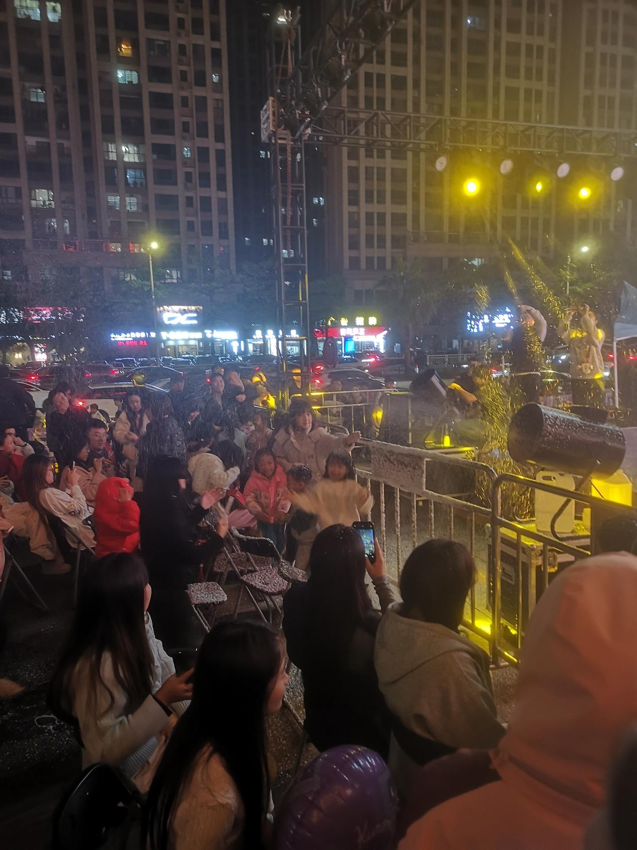 2025年大亚湾万达广场跨年活动因为现场人员过多,被要求暂停取消。 你相信吗,大亚湾万达广场的跨年活动竟然因为现场参与的人员过多,存在过度拥挤安全隐患,被叫停取消了。 2025年末的跨年夜,也是恰逢大亚湾万达广场8周年庆,主办方举办了现场演出,现场聚集了大量人员,一度把万达广场2号门的门口都给堵住了,进出严重受限。大亚湾西区的现场治安管理员见状也是立即沟通叫停了活动😅 当晚活动现场乐队演唱为主,几支来自不同地方的乐队登台演出,来自深圳的不知道什么乐队名字忘了,演出到22:30就结束了,由另外一支华为智能体验店安排的发条乐队继续演出,现场休息时间穿插有主持人提问答对有奖环节,一度把现场气氛带动到高潮,就在发条乐队准备继续登台演出时,过来了两名治安管理人员,随后主持人就宣布活动取消了,叫大家安全有序撤离。 今年的跨年活动,从整个活动演出的安排来看,整体来说实属一般,就几个乐队的歌曲演唱,中间万达主办方安排了一个人工飘雪活动,也是效果一般,两个雪花喷洒桶,其中一个自始自终都没有工作,几个维修人员轮番上阵也没修好,现场的人造雪花也差点意思,就几个小朋友见到雪花手舞足蹈,现场的雪花喷洒出来,随后就变成了泡沫,不一会儿主办方就安排保洁阿姨上场给处理干净了,估计他们也感觉就这样的雪花场景确实有点尴尬,还不如早点清理干净。 总体来说,大亚湾的人流量确实越来越多了,不管是平时还是节假日都明显感觉到人越来越多,万达跨年活动一般,万达广场场地大小受限,已无法举办这种大型跨年活动,这也体现了现在的大亚湾对于快速增长的人流量周边娱乐配套规划的严重不足。 最后大家都在哪里跨年呢?感觉怎么样呢?祝愿大家新的一年一帆风顺,事事如意,健康开心![比心][比心][比心]