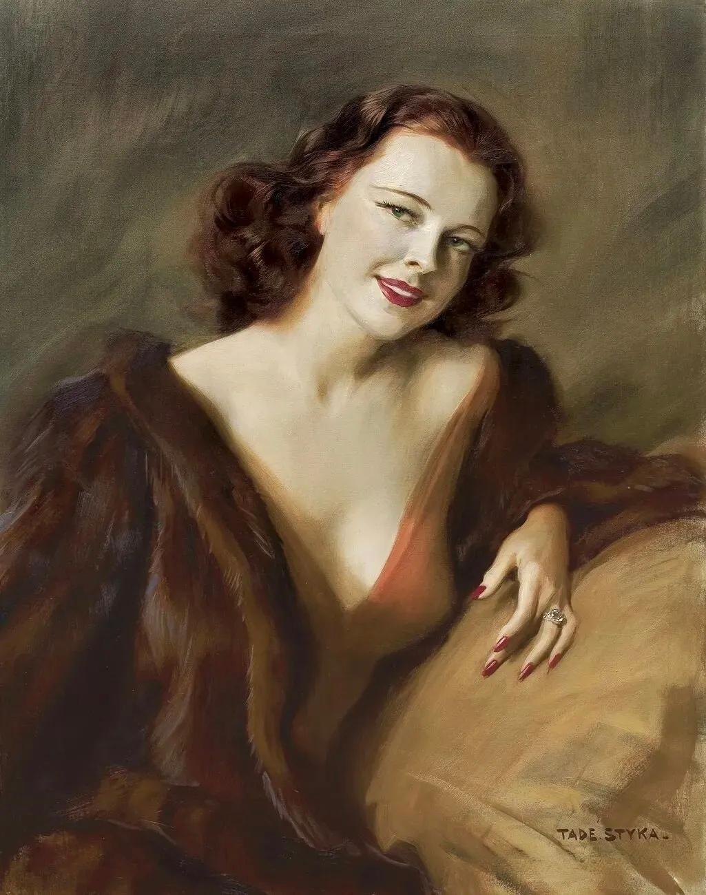 复古油画中的优雅女子,手持调色盘,红衣飘逸,韵味十足。