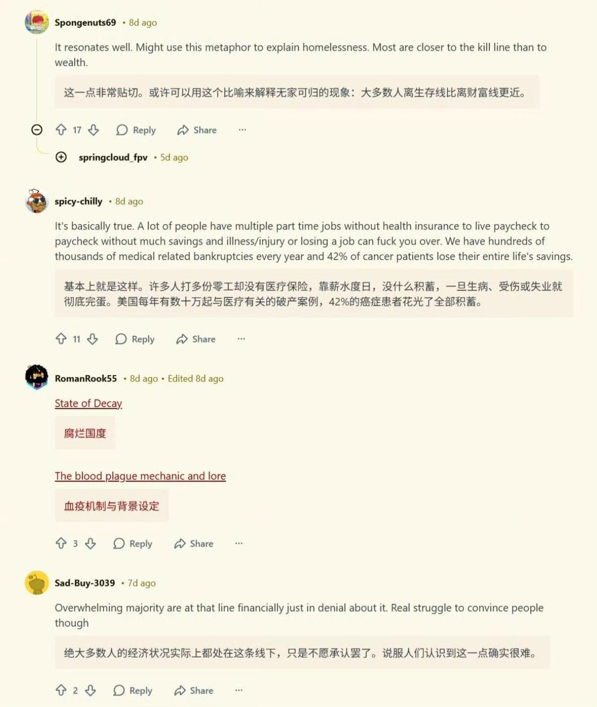 对斩杀线这词不舒服?那不还有ALlCE线(爱丽丝线)这种萌萌的称呼吗?还有生死线、生存线这种美方提法吗?! 但美国人就认为斩杀线这种说法很贴切啊。美媒和美国人自己都承认,就你这些假美国人不承认。还开盒牢A,想推翻牢A人设,继而得出牢A不可信,牢A说的话不可信。 对美国人民的安安饿殍视而不见,可不能扰了你的赛博小确幸?!