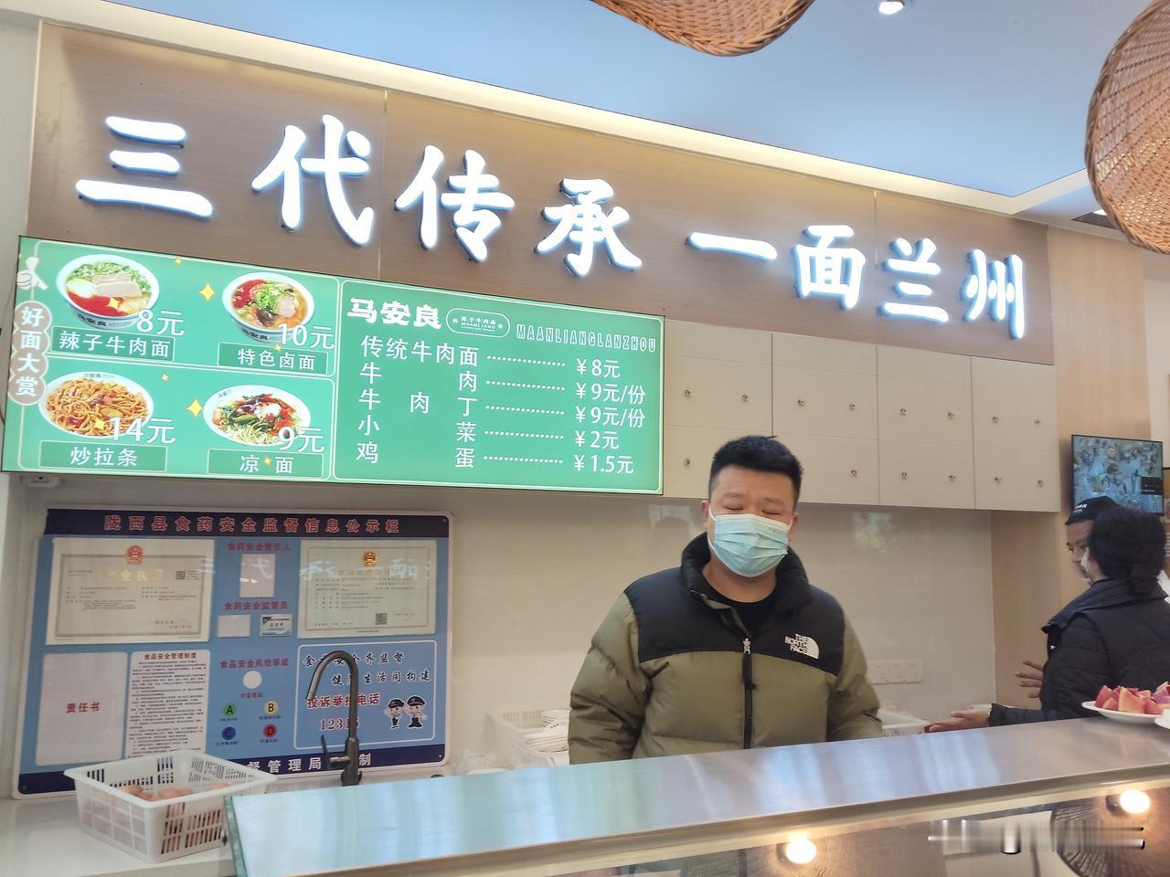 在陇西吃碗兰州品牌牛肉面——马安良辣子牛肉面。 去的时候已是下午两点左右,店里人还在排队买票、等饭。好不容易等到我要的“韭叶子”,端上饭,却一时找不到座位。或许是今天元旦放假吧,没想到顾客爆满。 挑起饭一看,这“韭叶子”像是“二宽”,比平时吃到的“韭叶子”宽好多。吃了一口面,觉得并不筋道,或许是寻找座位时间长了,饭泡绵了。喝了口汤,觉得特别辣,不像是平常牛肉面里的辣椒味道,倒是让人想起好多年前吃过的四川朝天椒的味儿,觉得特别过瘾。不过,因为感冒嗓子疼,觉得稍稍有些呛人。 吃到完,好像只吃到两颗小小的牛肉粒。 听见旁边座位上一年轻人说:“只放了一勺辣椒,就辣得很!”我不知行情,在兰州也没吃过马安良,根据平时吃牛肉面的习惯,说放上两勺辣子。其实,也就是两勺辣椒油,就辣得够呛!遗憾的是,面里蒜苗太少,放多放少,顾客说了算。 当兰州市上牛肉面店达到饱和时,开到小县城,也是不错的选择。六元的牛肉开到陇西,变成了八元,且每天爆满。这老板,贼精!