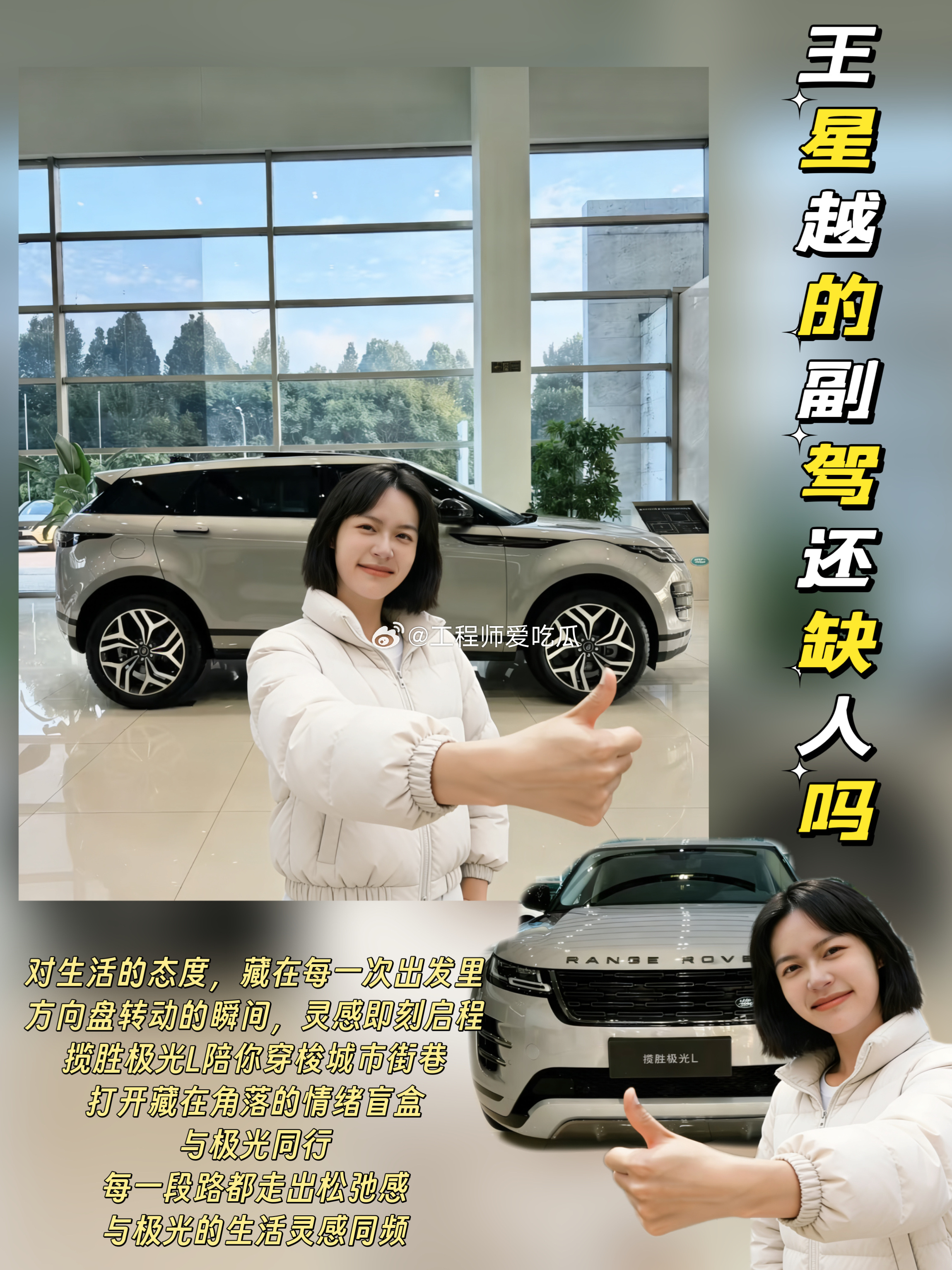 王星越的副驾还缺人吗 揽胜极光L朋友们,你们有过那种“一眼万年”的心动瞬间吗?💘 我最近就彻底体验了一把——看到王星越倚在揽胜极光L身旁,那种高级的时尚感与沉稳的力量感交织的画面,我瞬间就懂了什么叫“人车合一”!这简直就是行走的时尚大片封面啊!今天必须来跟大家唠唠,这台“出片神器”是怎么一步步把我“锁死”的!👉一眼沦陷:星光邂逅极光,谁看了不迷糊? 😍✨王星越的气质真的很绝,可盐可甜,既有少年感的清澈,又有驾驭一切的从容。而这,和揽胜极光L的设计内核完美契合!这车完全长在了我的审美点上!它不像传统SUV那样笨重,反而像一位穿着高定西装的英国绅士,优雅又精干。👉最让我心动的两处✅悬浮式车顶线条一气呵成,未来感爆棚,像把科幻片里的车开进了现实!🛸✅隐藏式门把手靠近时自动弹出,仪式感拉满,每次上车都感觉自己在主演一部都市剧!🎬想象一下,开着它,无论是停在都市霓虹下🌆,还是驰骋在旷野公路间🛣️,车身折射出的光影都自带高级滤镜。和王星越一样,它无需刻意摆拍,本身就是焦点,随手一拍就是点赞收割机!它不仅是车,更是表达自我态度的时尚单品!👉种草原因:坐进驾驶舱,我才知道什么叫“不想下车”! 🌟如果说外观是“一见钟情”,那它的内在就是让我“死心塌地”的理由!这里不是一个冰冷的座舱,而是一个懂你、宠你的移动豪华堡垒。✅舒适度直接封神了!拉开车门,高级温莎真皮座椅的质感就扑面而来。🌬️ 坐上去瞬间被包裹,尤其是加长轴距带来的逆天后排空间,配上飞翼头枕和电动靠背调节,家人朋友都说“这简直是头等舱待遇”!💺✅科技感聪明又贴心!中控那块11.4英寸高清曲面屏,操作流畅得跟iPad一样。语音助手超级“机灵”,说“我有点冷”,它立刻帮你调高空调温度,简直比男朋友还细心!😄 对我这种停车困难户来说,360度全景影像和“透明引擎盖”黑科技简直是救星,车底路况看得一清二楚,窄路会车和侧方停车再也没怂过!🅿️✅氛围感直接浪漫满分!下班路上,打开Meridian™英国之宝音响,15个扬声器流淌出的音乐仿佛在耳边轻诉。🎵 再一键打开超大全景天窗,让星光或阳光洒满车厢,配上三区空调的宜人温度……这一刻,所有疲惫都被治愈了。🌈👉向往生活:它,就是我“精彩故事”的完美序章! 🚀看了好多车主的分享,我发现揽胜极光L带来的,是一种全方位的品质提升和 生活半径的爆炸式扩展。我向往的生活,是工作日它陪我穿梭CBD,从容干练;周末则能立刻带我去草原、去海边,探寻诗和远方。🏞️ 它的第二代智能全地形反馈系统,就像给车装上了“全能驾照”,各种路况都能轻松拿捏,让我敢去探索更多未知的精彩。最让我触动的,是那些充满烟火气的温暖细节:冬天用手机APP远程启动热车和方向盘加热,钻进车里就是暖烘烘的幸福感;☀️ 车内强大的空气净化系统,为家人尤其是宝宝撑起一把“健康保护伞”。这些点滴,让它超越了车的定义,成了一个懂你、守护你的家人。所以,我和揽胜极光L的故事,正等待落笔。✍️ 我向往的故事,是载着所爱之人,在宽敞静谧的空间里,共享一路欢歌笑语;是在每一个平凡或特殊的日子,都有它带来的安全感和惊喜感。它让我坚信,真正的精彩,不在于永远在奔跑,而在于无论目的地是哪里,你都有最棒的伙伴、最舒适的港湾和最自由的心情。这,就是揽胜极光L与王星越共同为我勾勒的、令人怦然心动的未来图景! 💖