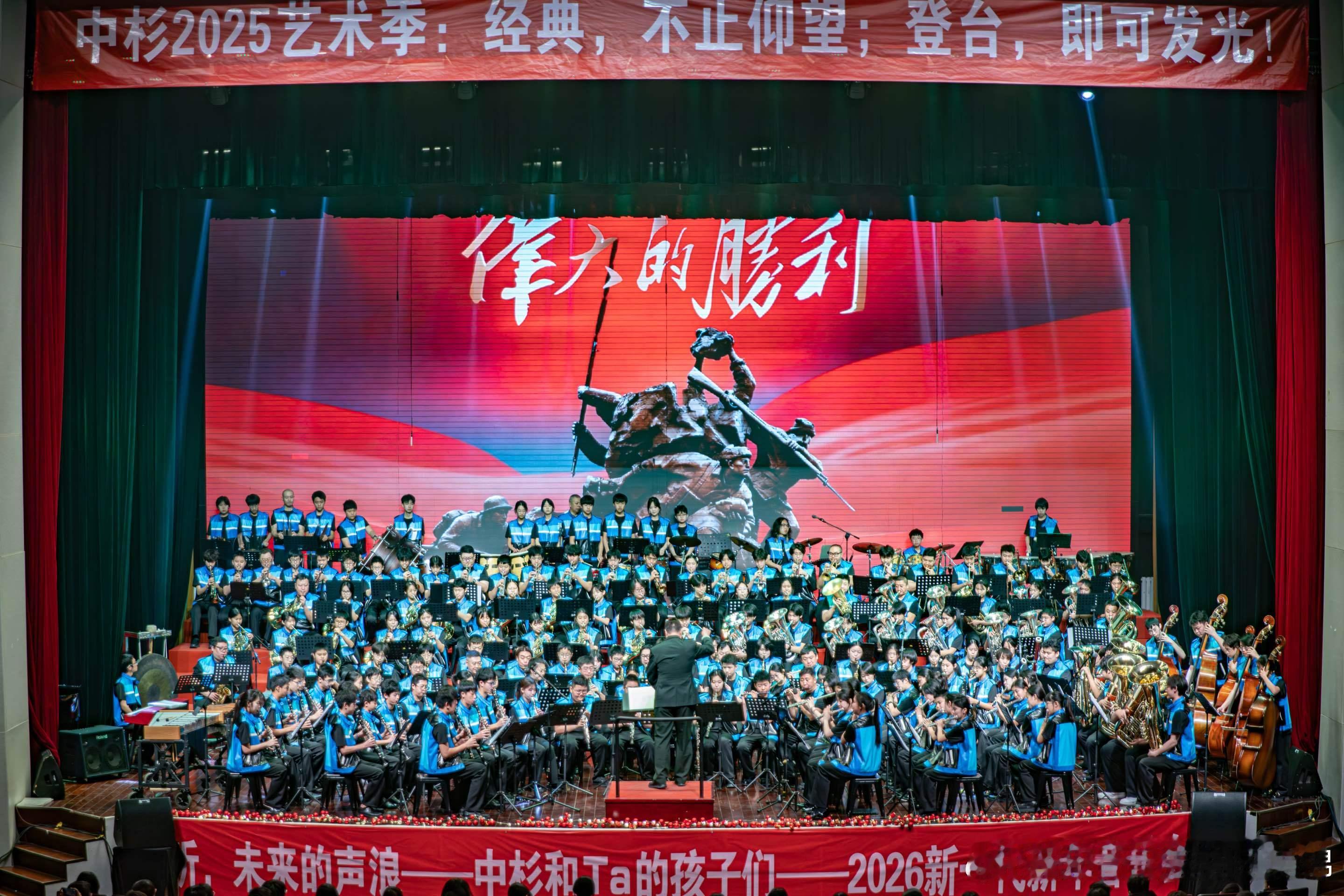 《“中杉和ta的孩子们”新年音乐会:经典在传承中绽放 》 最终,音乐会在温暖与希望中落幕,并正式揭晓2026年新年音乐会主题——“未来的声浪”。这场聚会不仅用音符辞旧迎新,更深刻诠释了教育的真谛:教育是一场温暖的共舞,学校以资源托举梦想,孩子以才华回馈荣光。当新年钟声即将敲响,中杉与她的孩子们,已准备好共同谱写下一段华彩乐章。