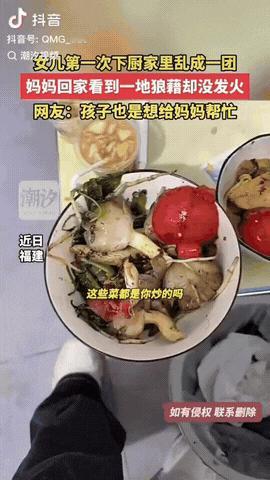 福建,一女子下班回到家里, 看到一地狼藉,但是她却没有发脾气,原来是她的女儿第一次下厨,所以把厨房搞的一团糟,女子心里既感动又心疼女儿。网友:孩子也是想给妈妈帮忙。 信息来源:潮汐视频 妈妈下班回家,一进门就没见到小家伙,却听到锅碗瓢盆铛铛响。 走进厨房,菜叶、白菜和豆芽散落一地,垃圾桶口也塞满了剥下来的菜叶。 电磁炉上溅满油迹,锅里还剩半碗汤,一旁的桌子上放着四盘菜,连刀都没碰,菜直接往锅里扔。 “妈妈,我想炒菜等你回家……” 小女孩哭着说,眼泪汪汪。 妈妈心里瞬间刀绞:“你还小,不能自己下厨,太危险了。妈妈不吼你,也不打你,但以后别自己炒。” 说完,她没大声责备,只是轻轻揉了揉女儿的小脑袋,然后默默把厨房收拾干净。 不少网友感动地说:“这小姑娘太懂事了,真想给她一个大大的拥抱!” 也有人建议:先给孩子足够的情绪认可,再耐心讲解切菜、用火安全,等她大点了再一起学做饭。 孩子用最笨拙的方式表达爱,妈妈用最温柔的方式守护安全。 这份超龄懂事让人心疼,更提醒我们,安全第一,也别熄灭了孩子想帮忙的小热情。 这孩子懂得心疼母亲,难得可贵,实在太暖心了!只是她这个年龄还不懂安全意识那些,需要多加指导,给她一个大大的拥抱,家长可以鼓励她,教她一些安全常识。