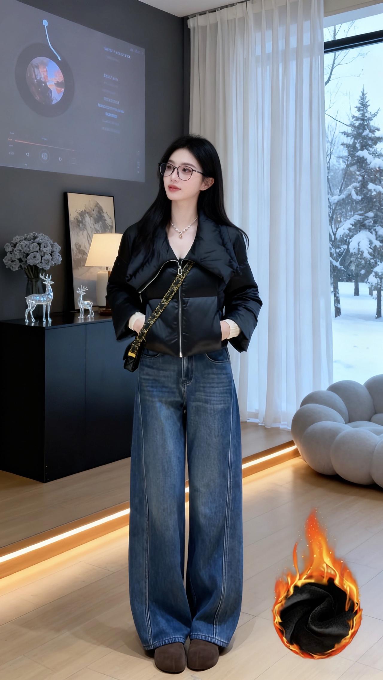 通勤搭配 轻熟穿搭 加绒牛仔裤 小个子穿搭