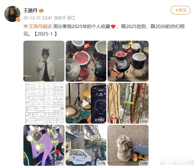 王珞丹一年的库存4小时发完了王珞丹4小时发完2025全年库存!敲架子鼓、干饭、撸狗超鲜活,像朋友分享相册,用细节满溢的生活碎片暖心告别旧年!