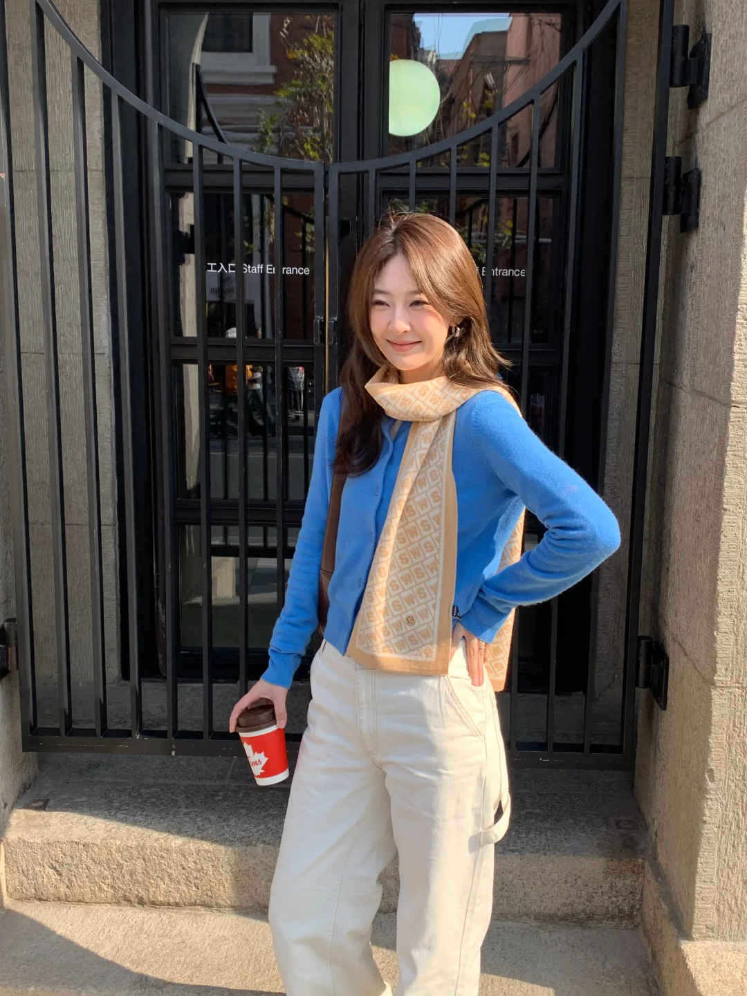 凛冽的寒风中最具体的温柔便是颈间这条万事利围巾 100%绵羊毛的肌理中藏着天然的细腻 贴肤时的软糯暖意 是人工面料无法复刻的温柔 经典字母交织出低调的精致 浅调的驼色系与宝蓝针织衫搭配 勾勒出不动声色的高级感 让这份冬日陪伴多了几分妥帖 新年焕新 用这样一件质感配饰 为岁末的穿搭画上温柔句点