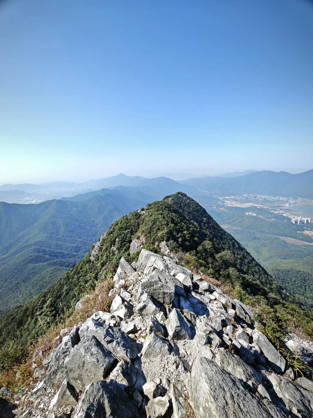 排牙山是深圳第六高峰,海拔718米,因山形似一排排错落不齐的牙齿,故得名排牙山。排牙山三面环海,视野开阔,风景秀丽,沿途多悬崖峭壁,怪石嶙峋,有着深圳“第一险峰”的称号,吸引着众多户外爱好者前往攀登打卡。