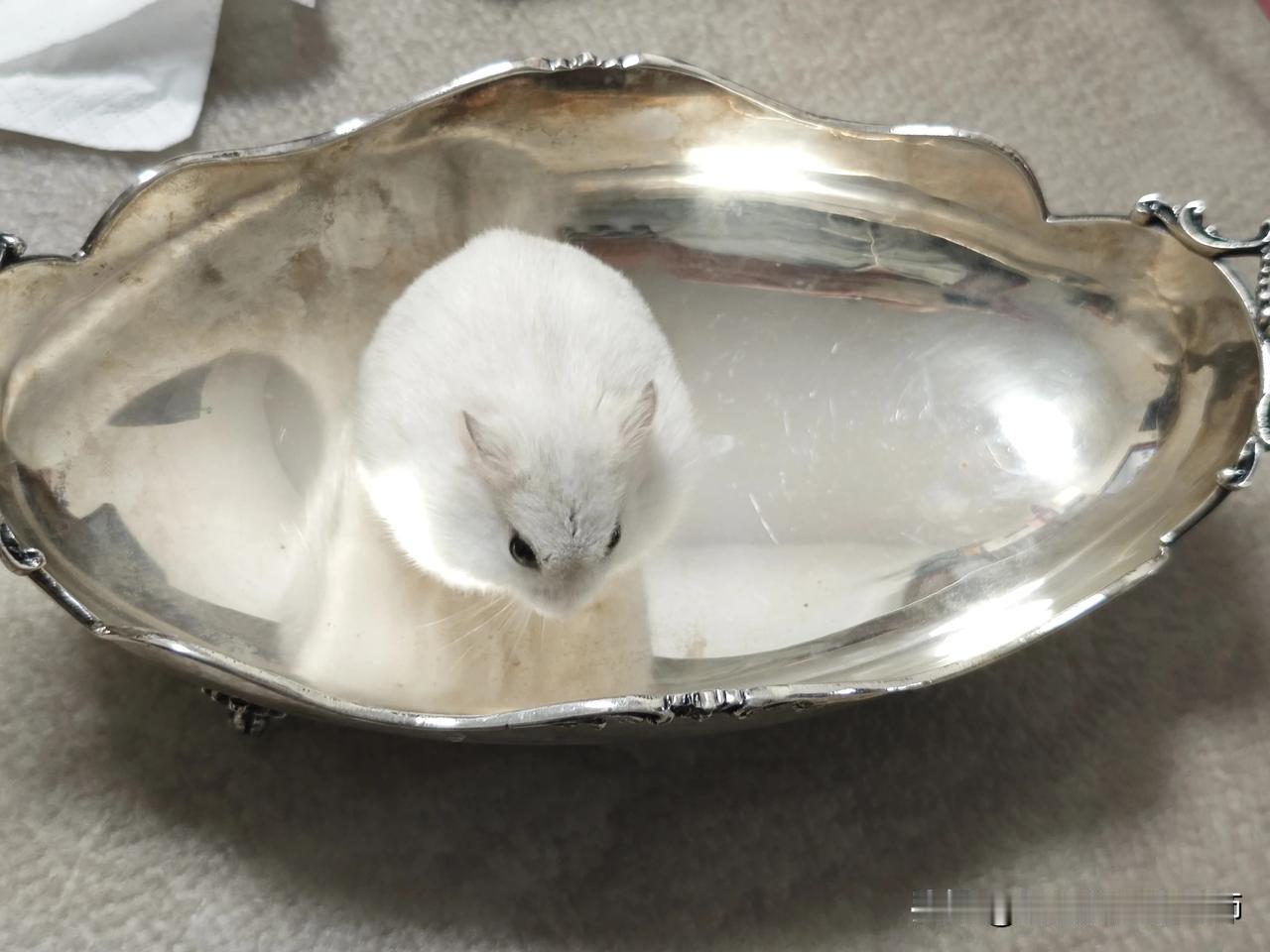 新年给仓老师买了个浴缸[呲牙] 银的质感让小仓鼠慌得啥一样[大笑]
