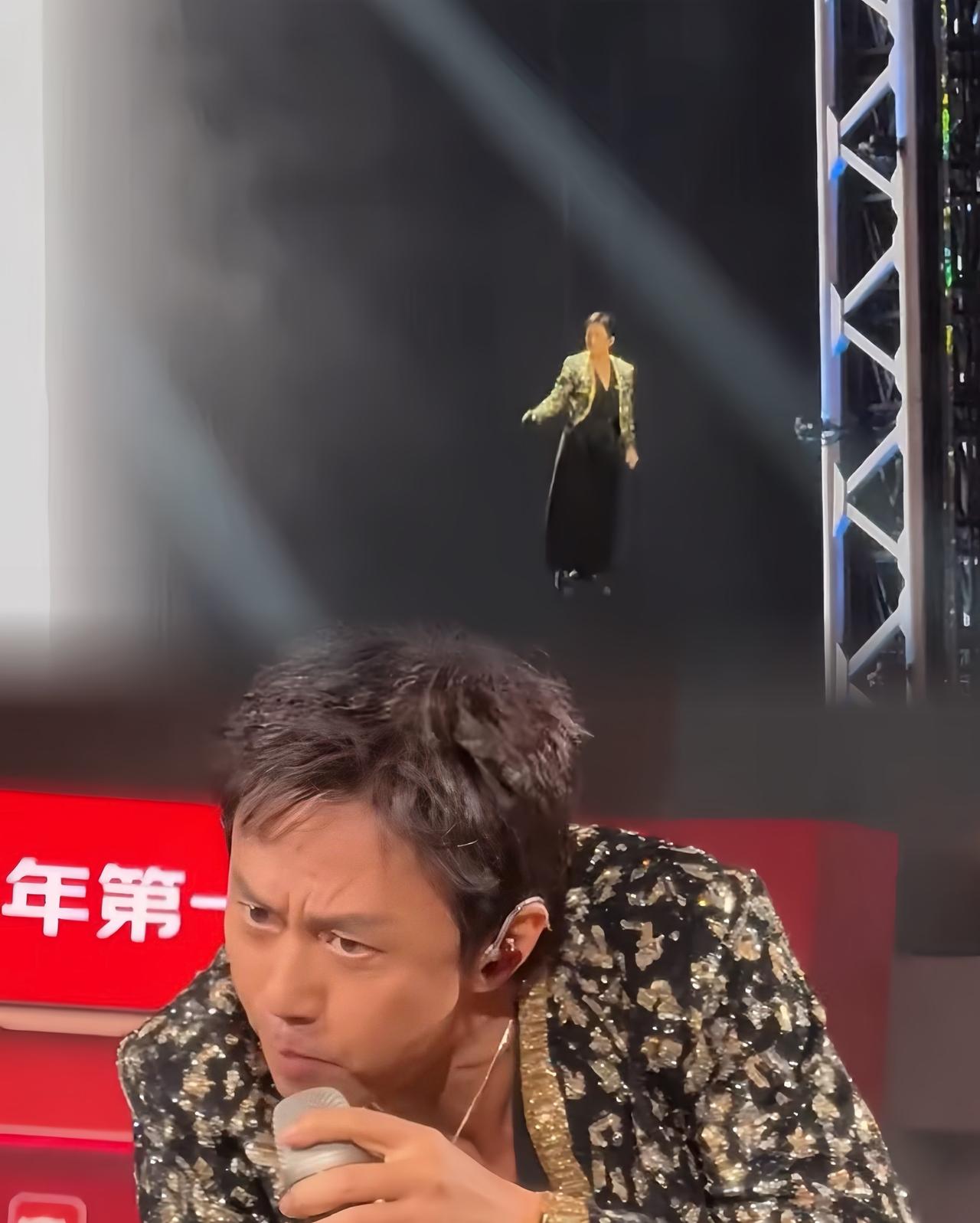 湖南卫视的跨年晚会, 最出圈的不是那英, 也不是王嘉尔, 反而是邓超。 他开场就吊着威亚从天而降,一套《超级英雄》《饿狼传说》《音浪》三连唱,七分钟全开麦,一点没喘,动作还一个没少。满场跑、太空步、转圈,衣服都湿透了,下场时还在笑。 中间他还喊出“gogogo出发咯”“we are 伐木累”,全场都跟着吼,气氛直接拉爆。听说他彩排时脚踝扭伤了,医生不让动,结果硬扛着上,一点没露怯。 最离谱的是收视率,他一出场就冲到2.25%,全晚最高,比去年峰值还高。网友说他粤语比港星还标准,现场和观众对唱,完全不像演,更像一场大聚会。