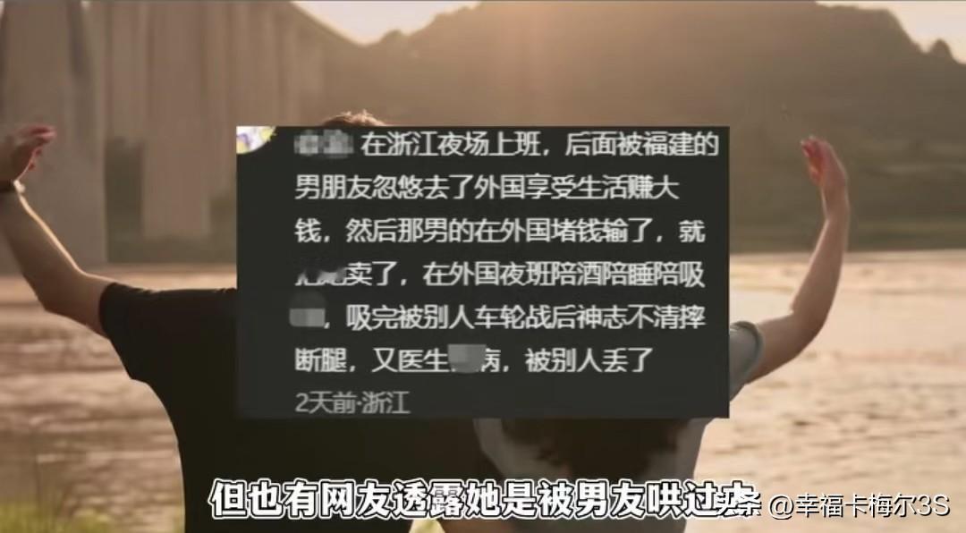 20天!网红美女变残腿流浪女,柬埔寨街头的遭遇太揪心 一个叫吴甄桢的小网红,20天前还在社交平台上浓妆艳抹,名牌墨镜、恨天高标配,满脸胶原蛋白,那叫一个光鲜亮丽。结果20天后,直接被丢在柬埔寨街头,瘦得只剩皮包骨,精神恍惚,腿还受了重伤,弯得吓人,浑身脏兮兮的,跟之前判若两人! 据说是全靠老乡帮忙,才好不容易躲进救济所,喝上了口八宝粥。至于她为啥会落到这步田地,说法可多了。有人说她是自己误入歧途,觉得还觉得能玩能赚大钱,拉着同事一起,说一个月轻松挣十几万。但也有人说她是被男友哄过去的,说好一起奋斗赚大钱,结果男友赌输了,她就成了被交易的“商品”。 不管是哪种原因,中间经历的那些事儿想想都让人头皮发麻。现在就算能回来,身体也很难复原了。天上不会掉馅饼,那些看似轻松赚大钱的路子,背后指不定藏着多大的坑!