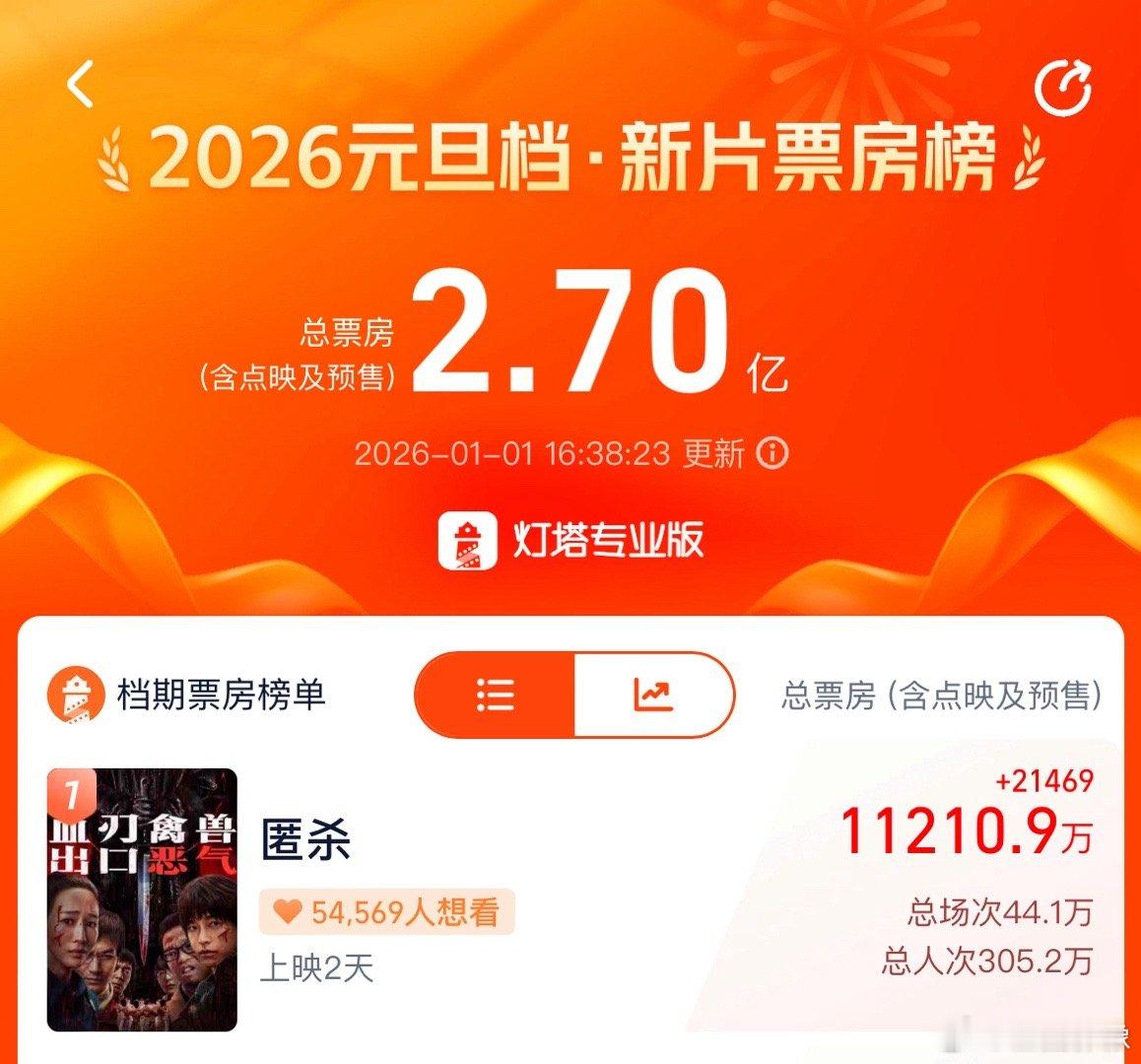 匿杀票房破亿《匿杀》票房破亿了!这电影我身边好几个朋友都去看了,还在朋友圈晒说看得很爽,在元旦档的表现真的不俗!看好后续继续走高。