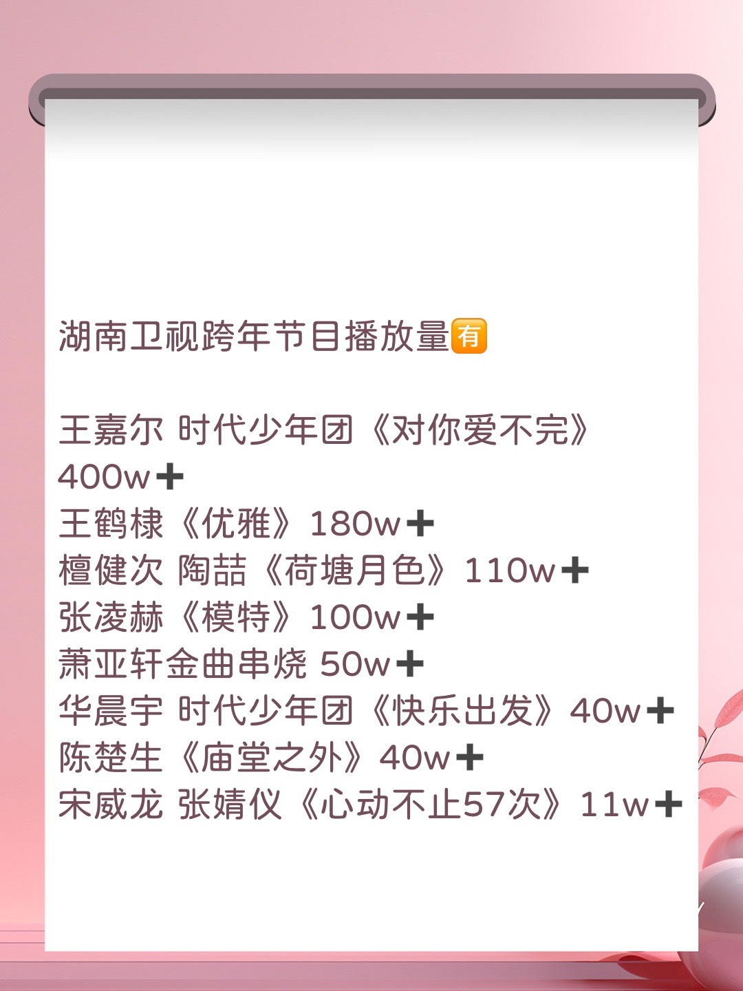 🍉【2026元旦收视滑坡背后,年轻人不再为跨年演唱会狂欢】数据显示除湖南卫视外多家卫视收视创新低,东方卫视收视率垫底,走势让人大跌眼镜同时,全网竟无跨年节目播放量破千万,到底是明星们的节目难看,还是大家都出去玩了,你怎么看?
