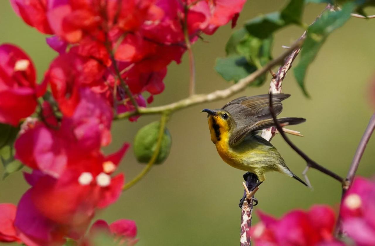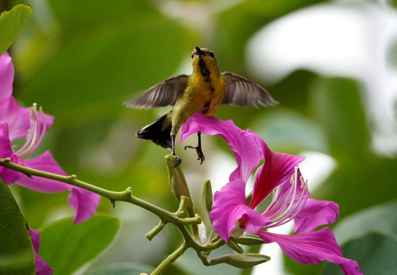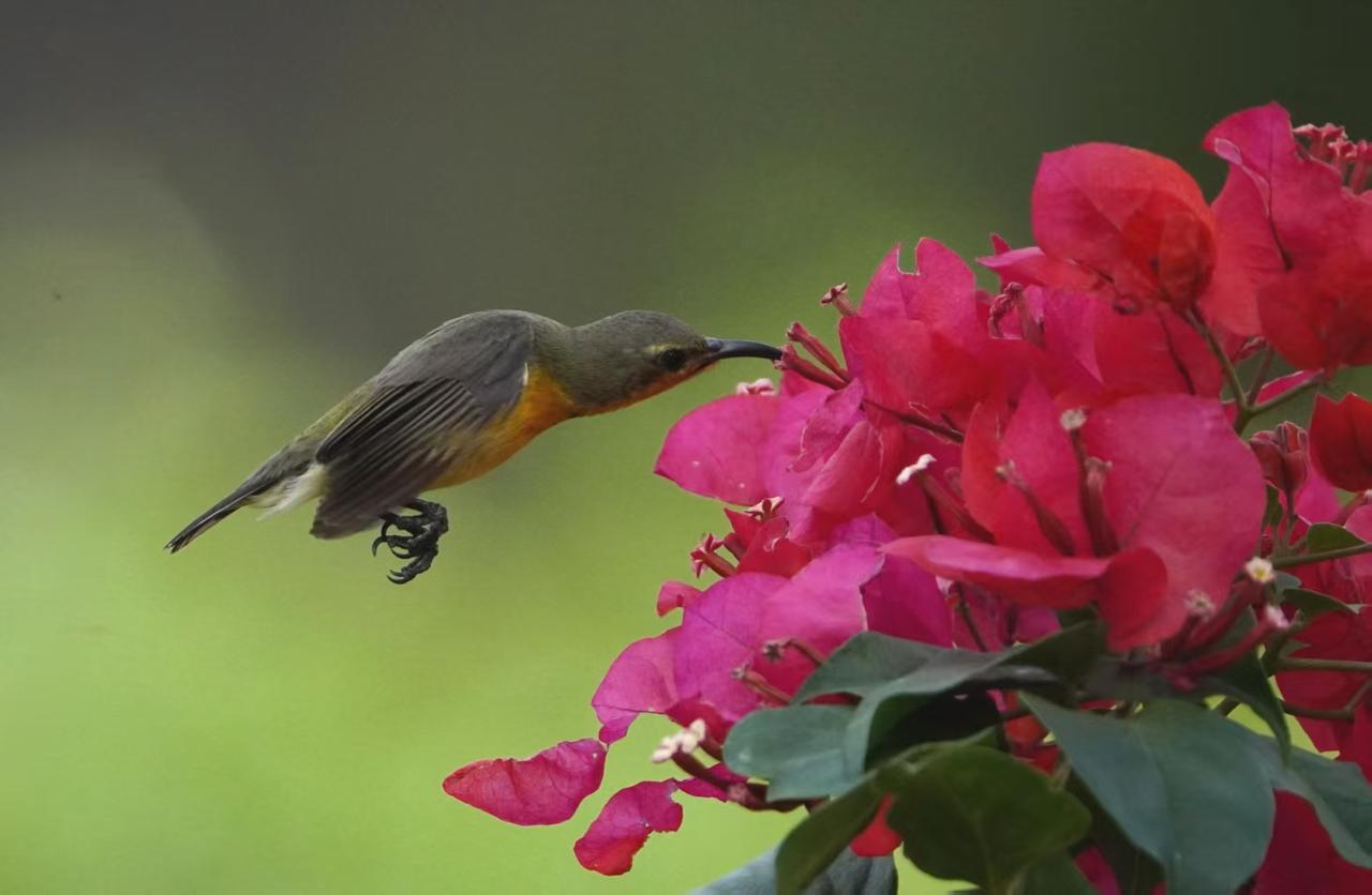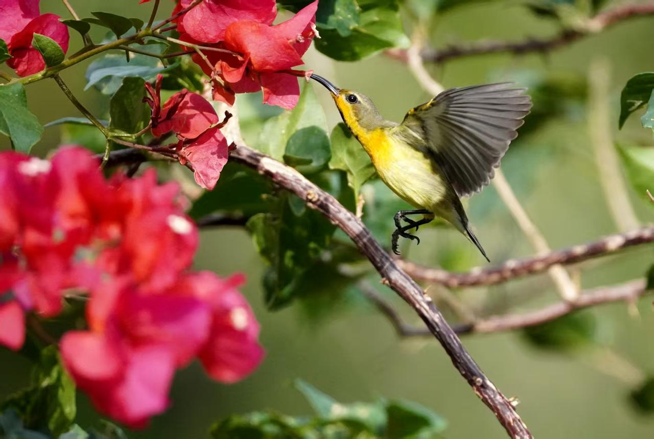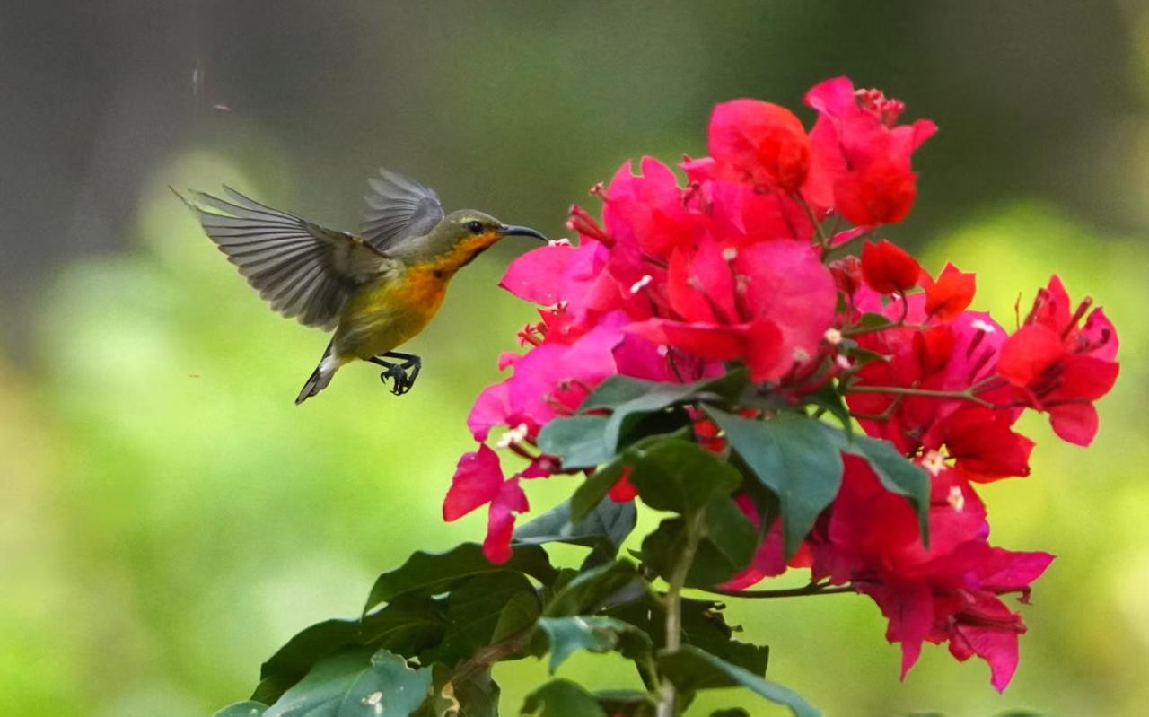 花鸟呈祥报新年 摄影师:王晓东 花知春夏谙秋冬, 蜜鸟出没觅花丛。 甘饴果腹日复日, 哪管岁替年新更? 年年花似人不同, 花鸟入屏大美呈。 新元今始启开泰, 有心摄取献峥嵘。 千姿万媚百样红, 鸟语花香两关情。 飞马驾到携祥瑞, 见者凭君事事成。