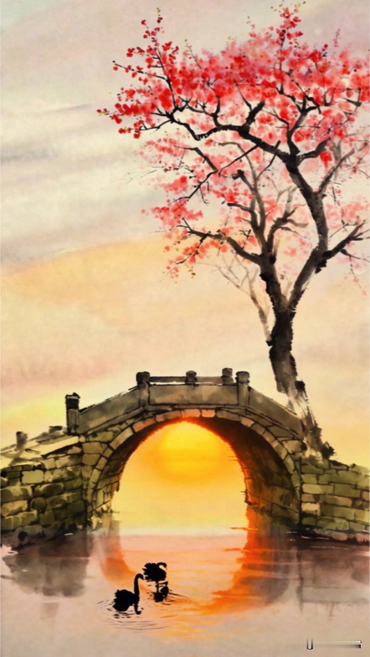 发张你手机里最美的夕阳照可以吗“红叶映桥影,夕阳照水波”🍁🌇
