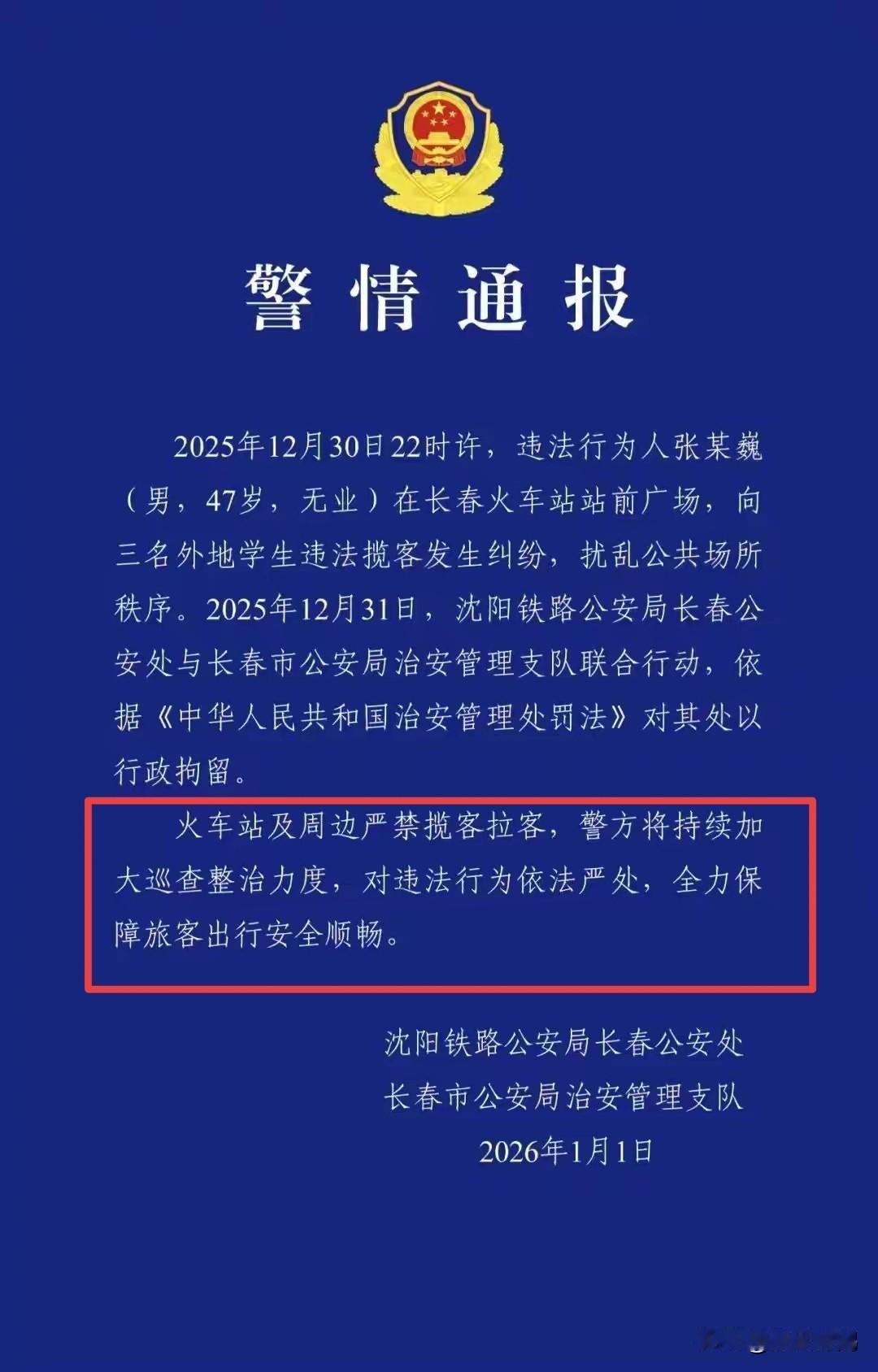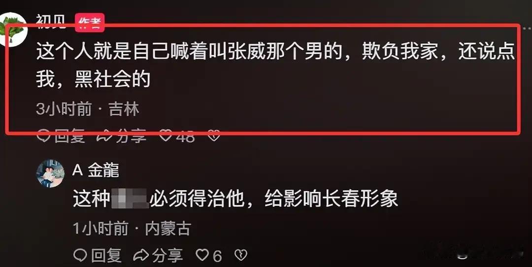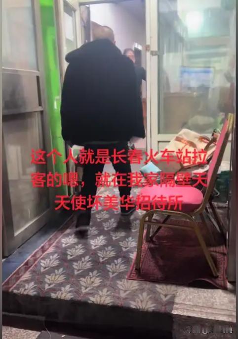 张威背后的女老板 是长春站前黄牛的组织者, 知情人爆料称: 他就住在张某的住所(美某招待所)的隔壁,认识张某好多年,他这个人真的很坏,专门欺负老实人,我们也不敢反击,因为对方是一个人,没有家人,又是酒鬼,每次喝完酒就闹事,而且他的这个老板也不简单,专门养了一些岁数的老人接站。 也难怪,张某会如此的嚣张,宰客,恶意要价,威胁人身安全: 30元的车费一口价70元,对方拒绝坐车,又要求必须给他买包烟,原因是他帮忙推了一下行李箱,天下没有免费的午餐。 再次被女生拒绝后,他当众威胁: “长春的出租车们,谁敢拉她们,我给你扬了!” 虽然,目前张某已被拘留,但等他出来又是一条好汉,希望官方多查查他背后的人,正好可以一网打尽。