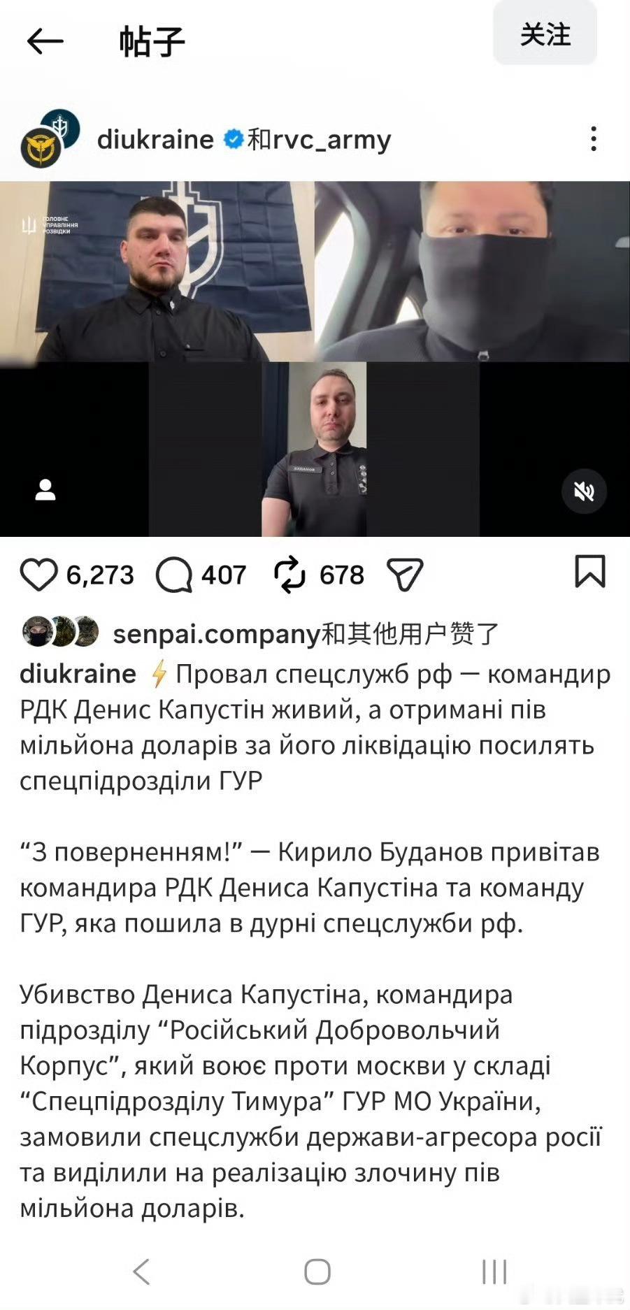 服了,俄罗斯自由军指挥官和创始人丹尼斯“Whiterex”卡普斯廷几天前壮烈牺牲是假的,为了拿俄罗斯的赏金。拿到赏金,他又复活了。普京:“你这厮诈死!”乌情报总局(GUR)布达诺夫导演了这场大戏,不仅挫败了俄方的一次刺杀行动,并且收取了对方支付的50万美元“酬金”。普京承认自己正在恋爱中关注俄乌局势最新进展俄乌冲突