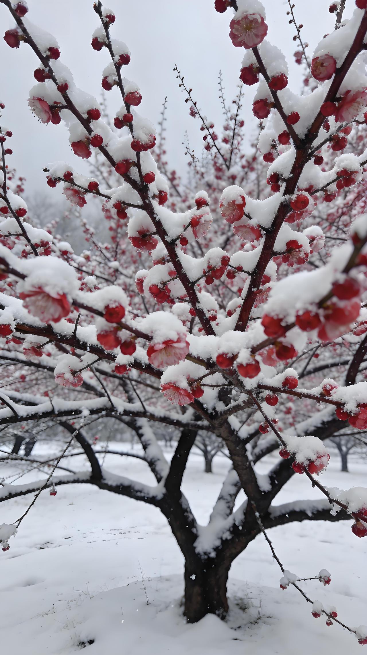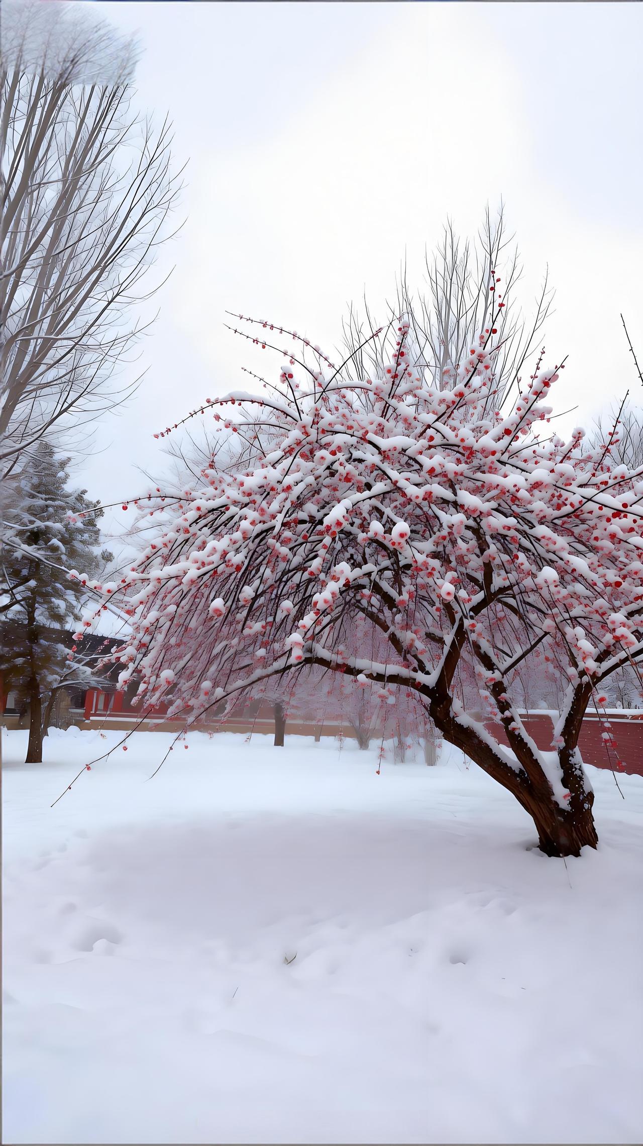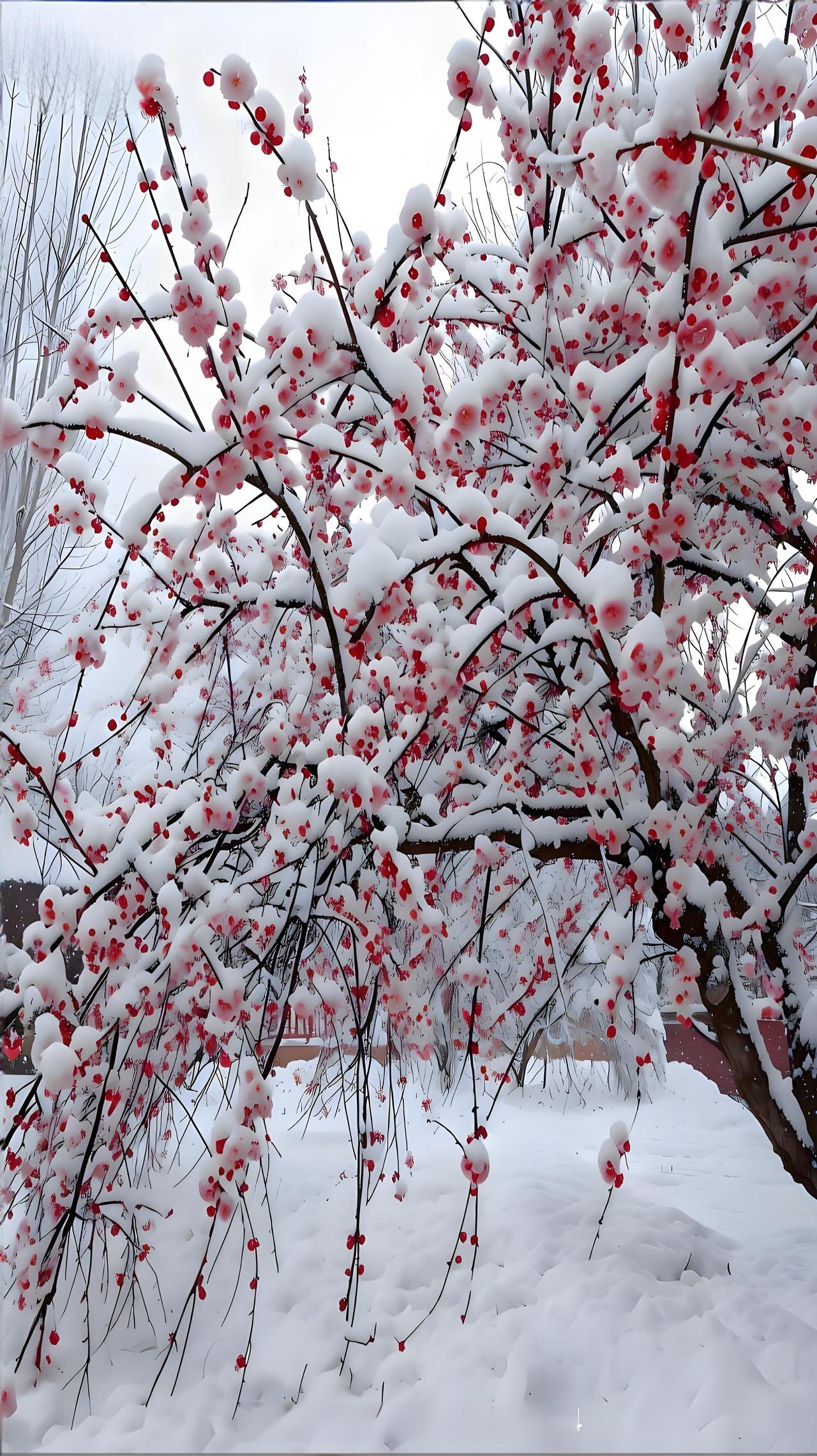 万物沉睡,它清醒,一枝红艳破冷清。不与百花争春色,偏在寒风中,笑出诗意。分享一张绝美的风景照片 治愈系冰雪仙境风光美景分享 傲雪寒梅 雪中梅 晒一张手机中最美的雪景照