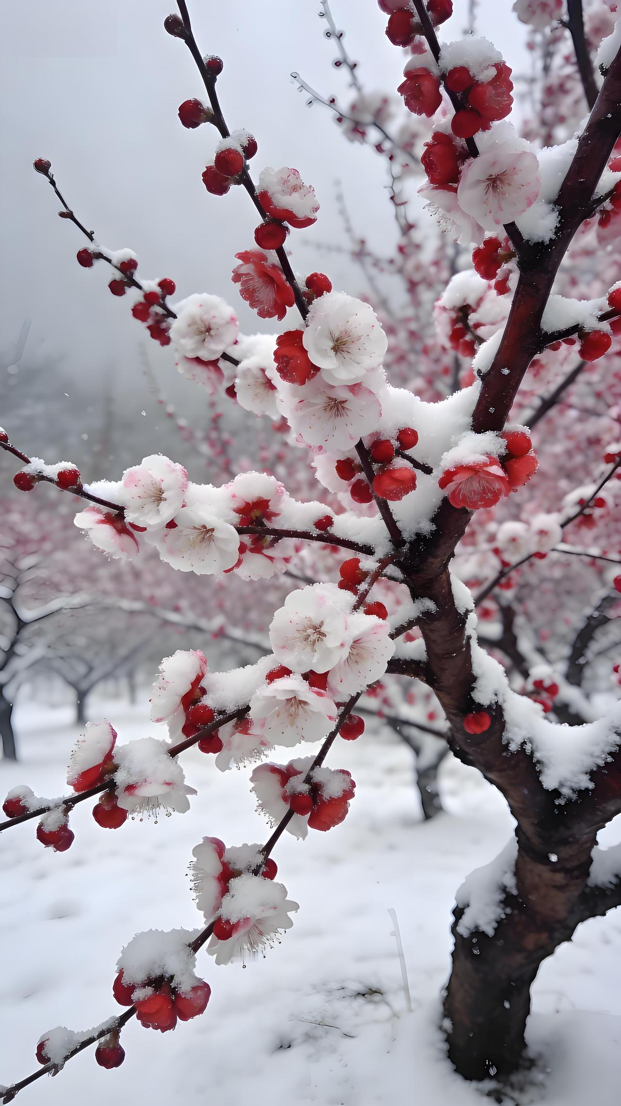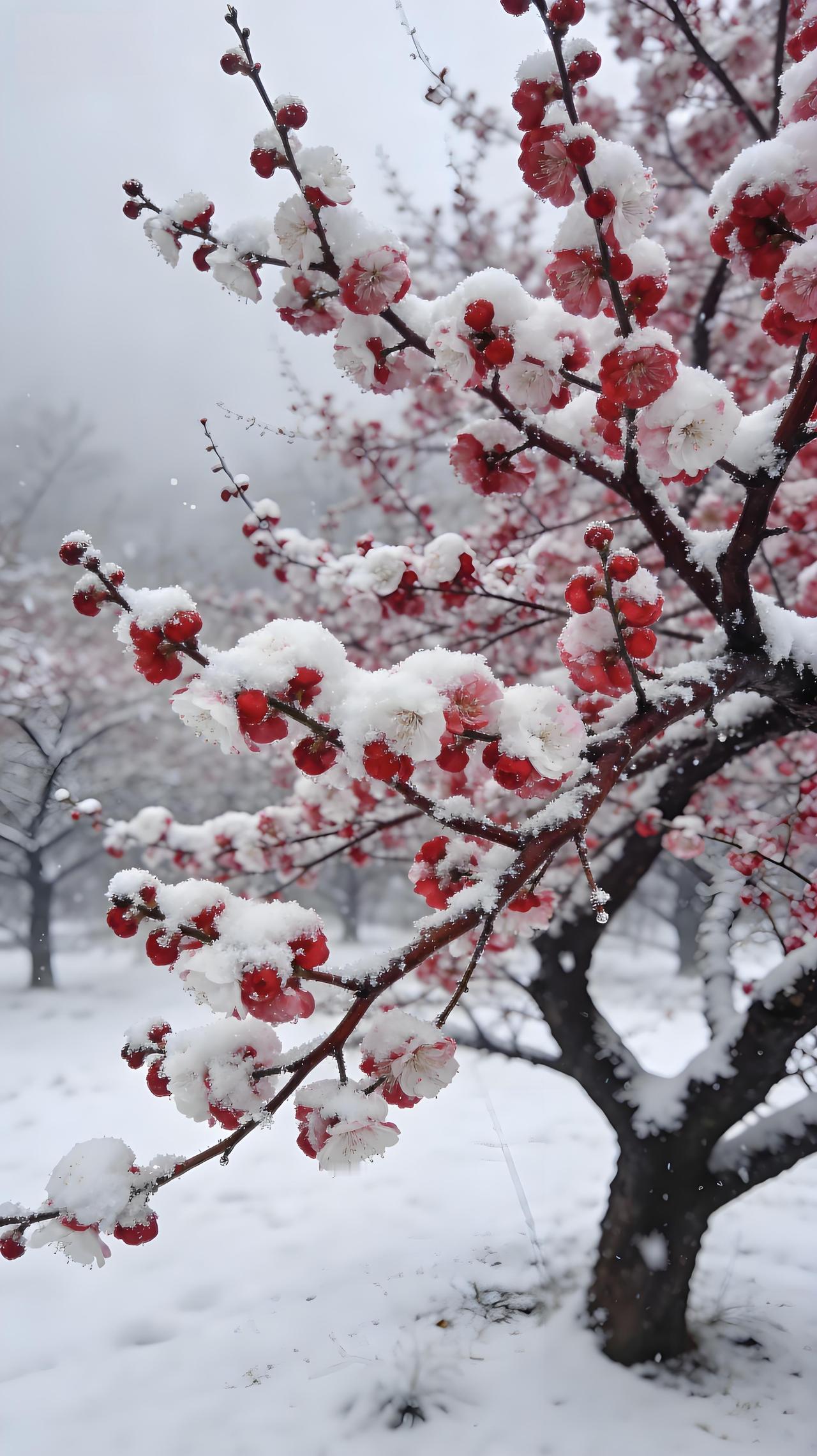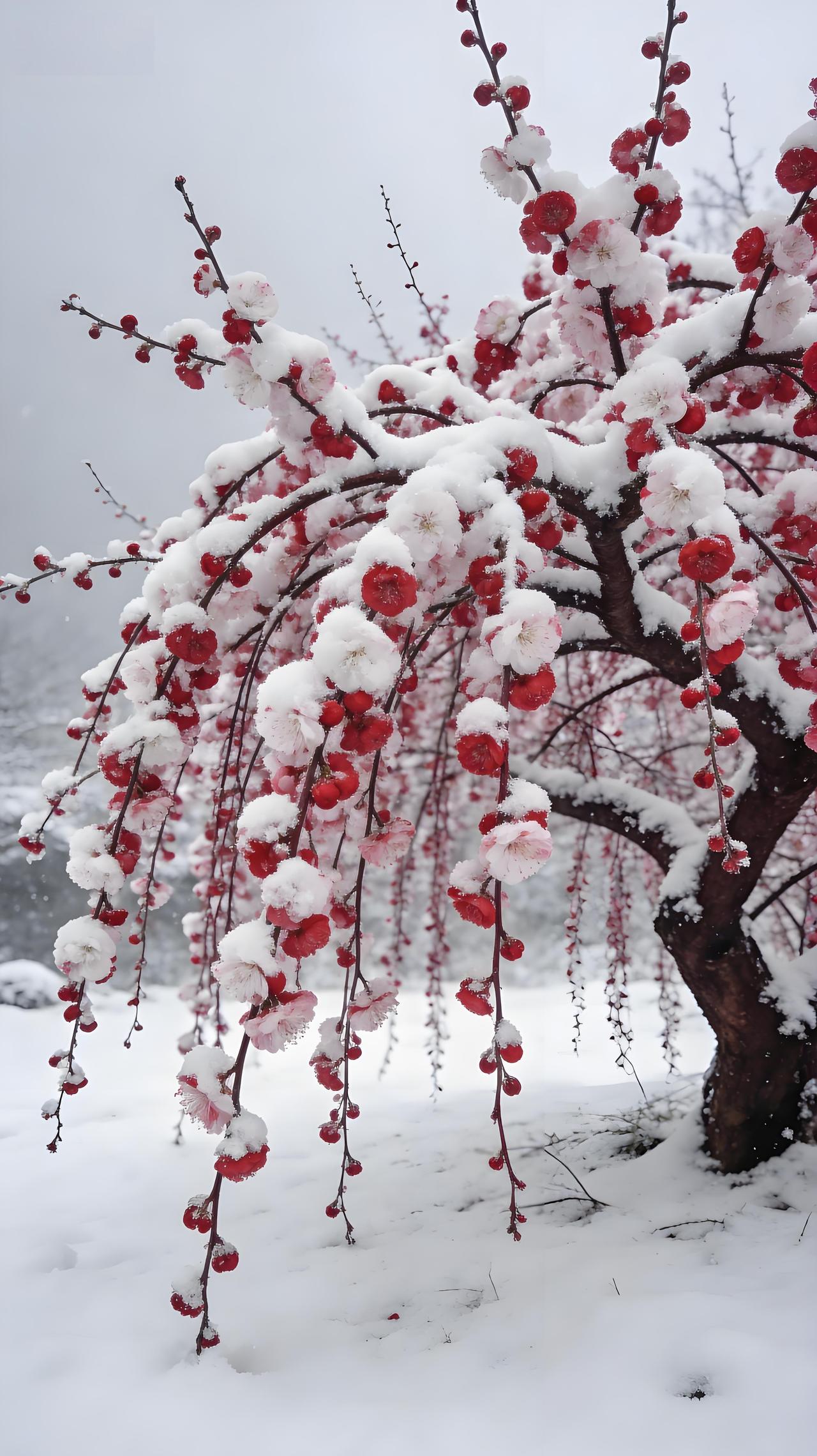 万物沉睡,它清醒,一枝红艳破冷清。不与百花争春色,偏在寒风中,笑出诗意。分享一张绝美的风景照片 治愈系冰雪仙境风光美景分享 傲雪寒梅 雪中梅 晒一张手机中最美的雪景照