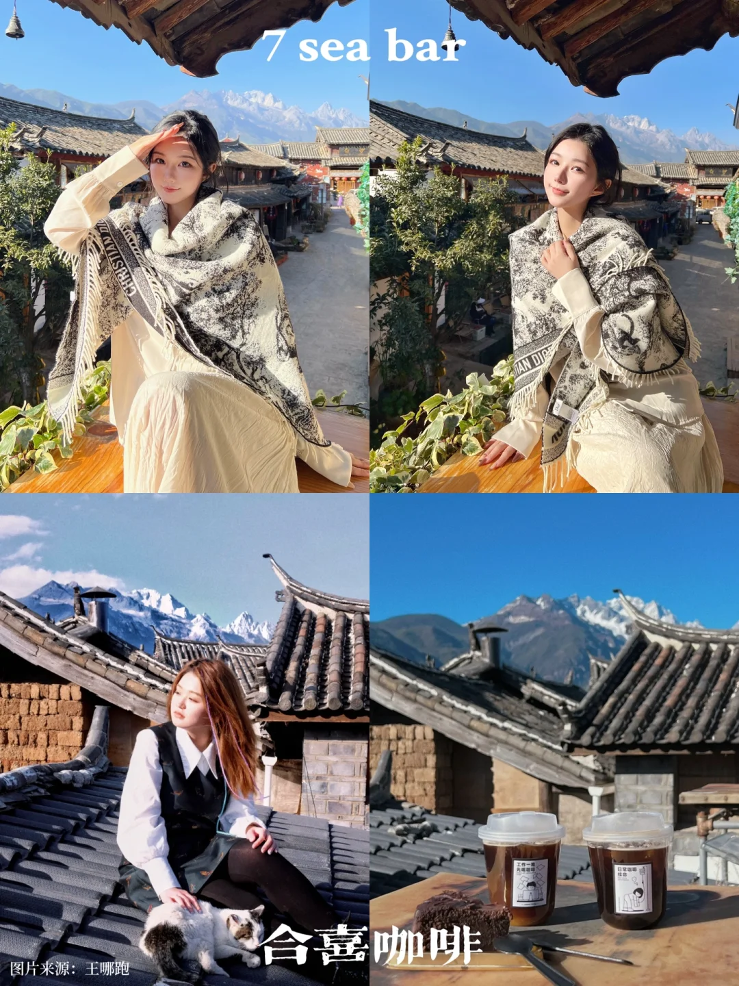 网红露台咖啡店,光线很好,可以遥望玉龙雪山和白沙门牌