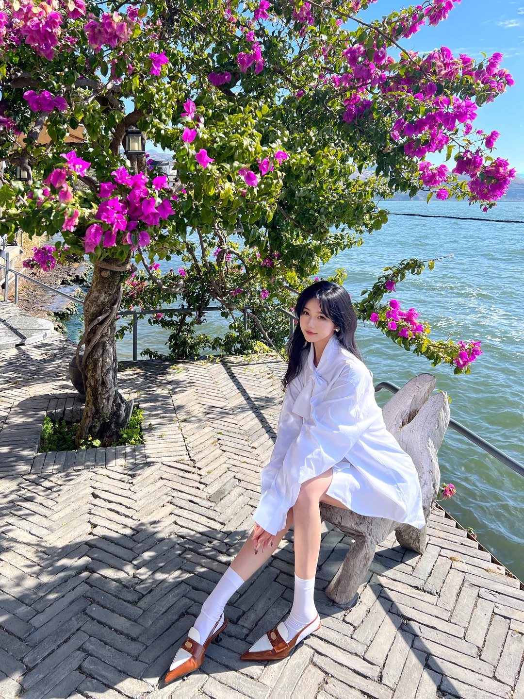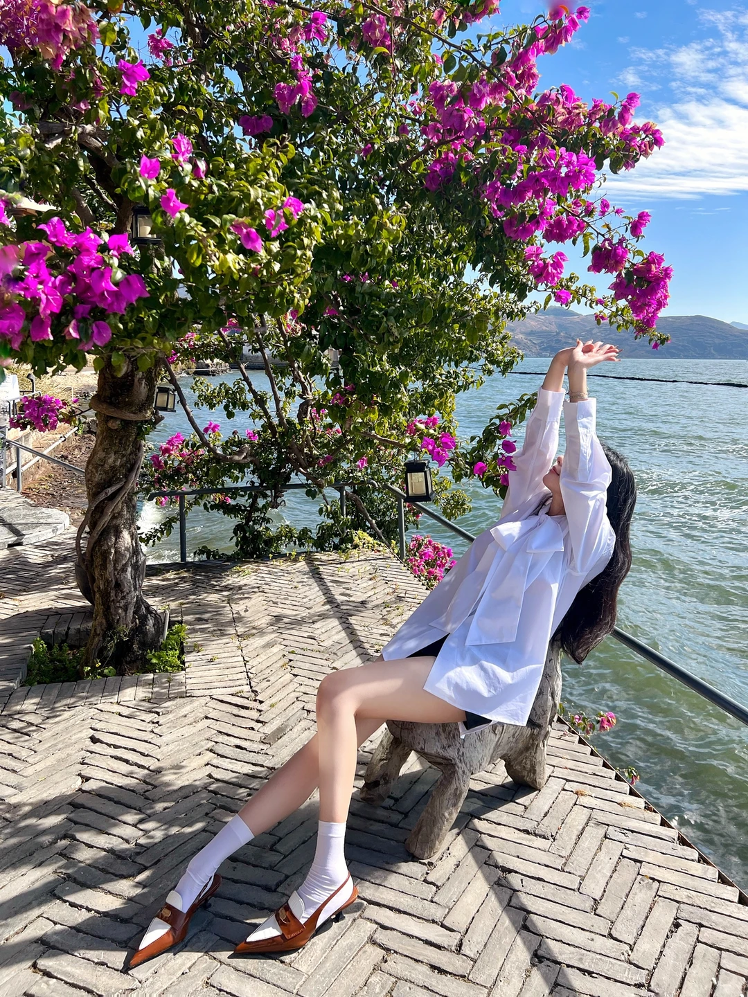 这里下午拍光线更好,三角梅真的太出片了,坐在树下的小木凳上分分钟化身小清新文艺片女主角!