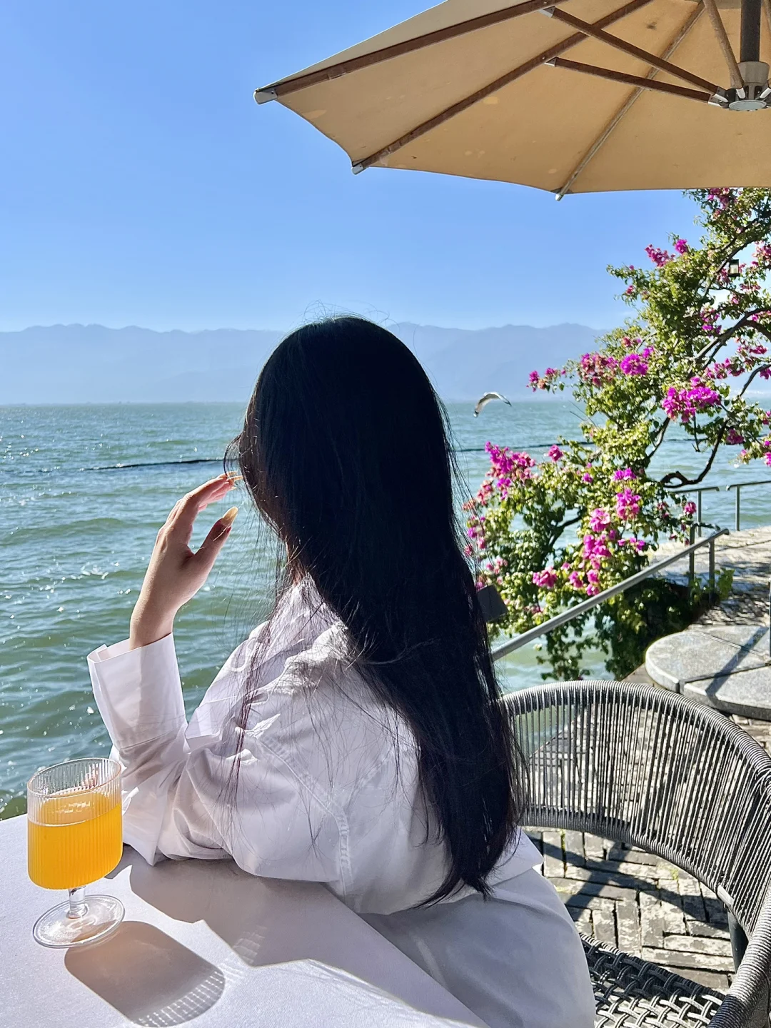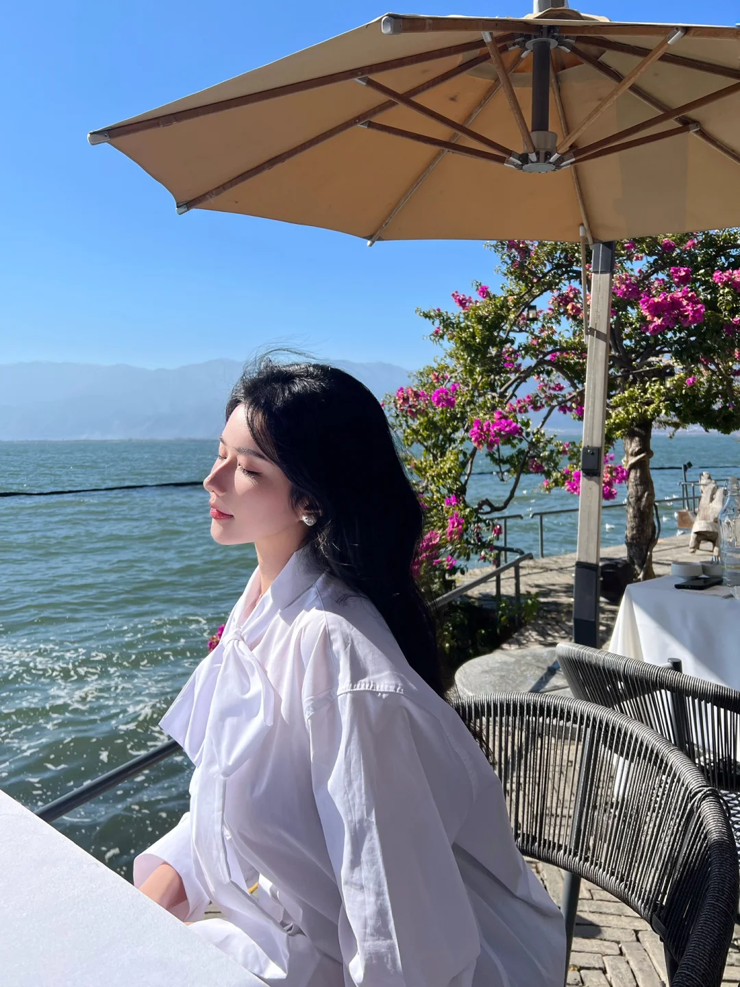 上午景观位往玫红三角梅方向拍是顺光,阳光苍山洱海天空梅花组成了一幅美丽的油画,随手一拍都是溢出屏幕的幸福感