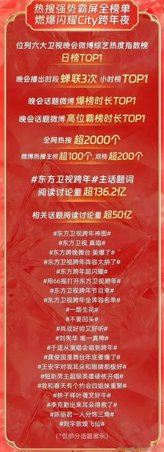 东方卫视跨年晚会官方战报:1、cvb收视率排名所有卫视跨年晚会第二。同比去年收视逆势提升25%,2、肖战《得闲谨制》舞台创最高收视,3、肖战零点压轴《不要回头》《现在不跳舞要干嘛》创东方卫视跨晚最高收视份额,4、2025东方卫视全年收视率最高节目。断层第一,5、上海本地收视创年度新高,6、东方卫视跨晚创微博热度指数第一,7、全网正片市占率第一☝️